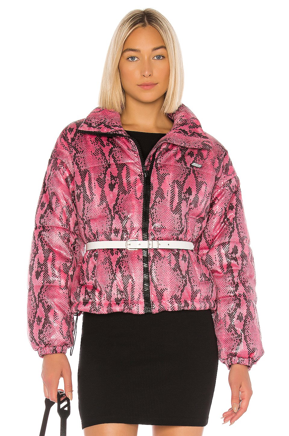 本体: 100% ポリエステル裏地: 50% ビスコース, 50% アセテートスネークスキンエンボス加工フェイクスエードジャケットフロントにジッパー留め具フロントポケットゴム入りカフ引きひもで調節可能な裾Please note belt not includedイタリア製