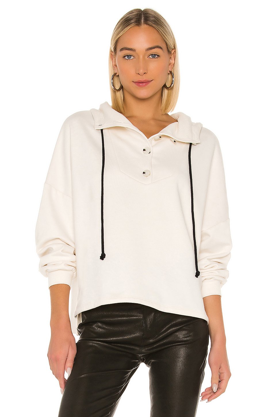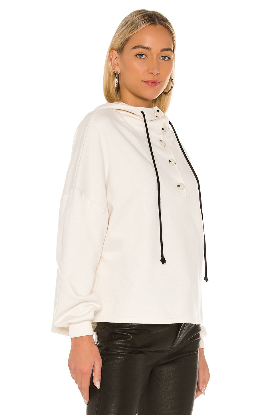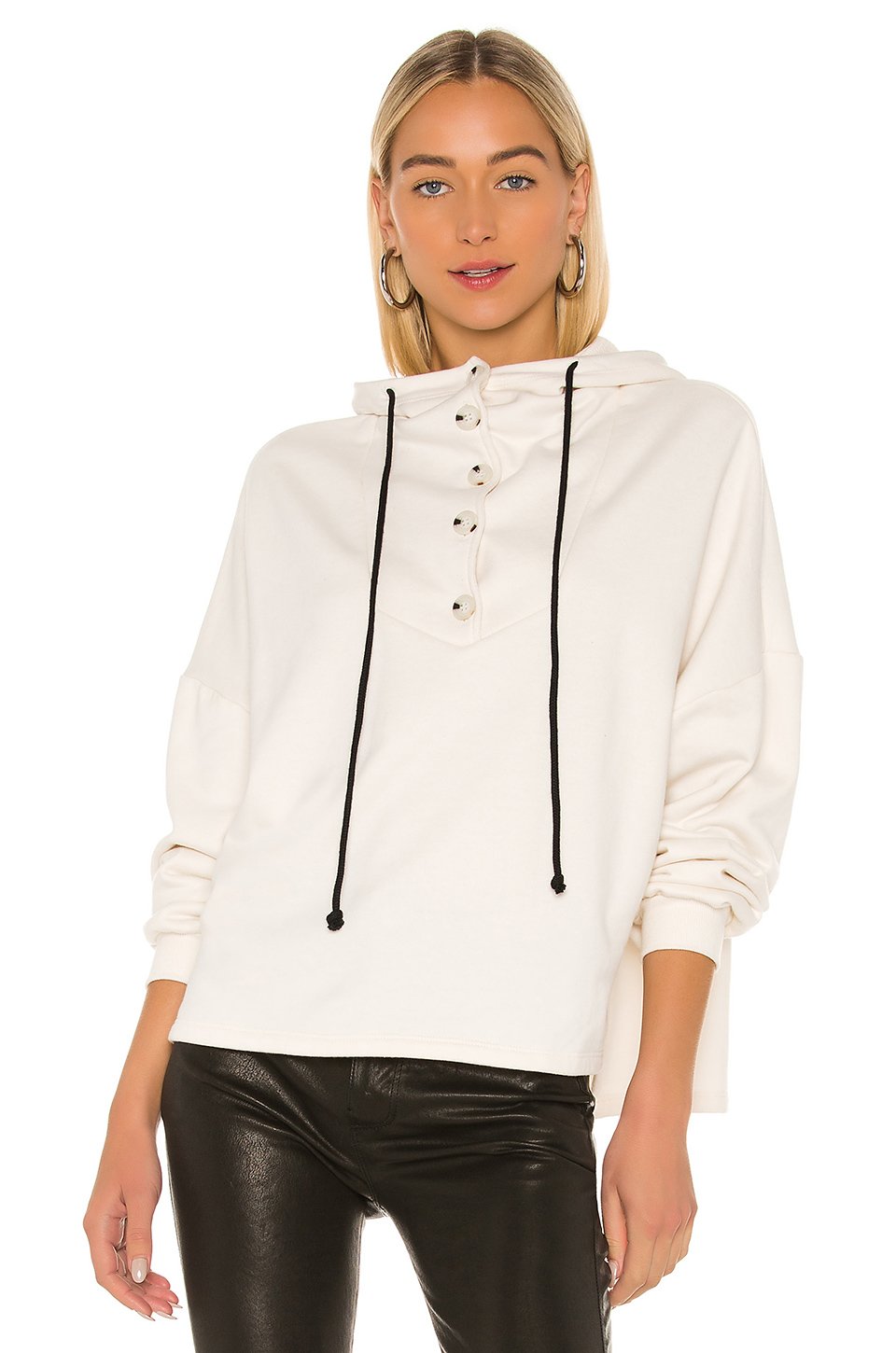 80% コットン, 100% ポリエステルフロントの一部にボタン留め具ドローストリングフード付テリークロスライニングカナダ製