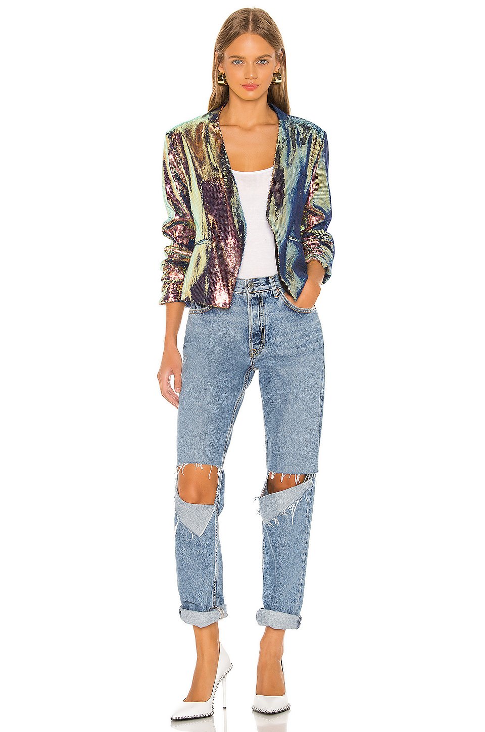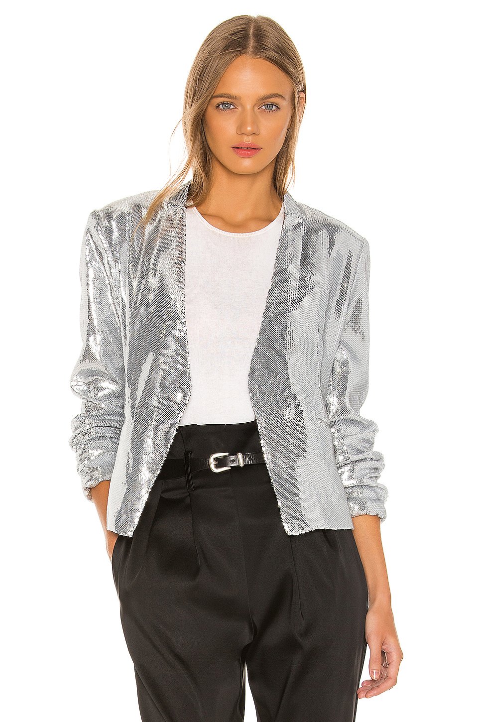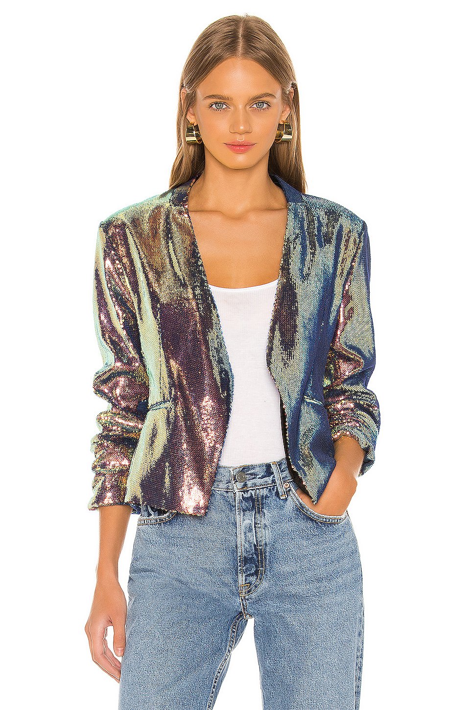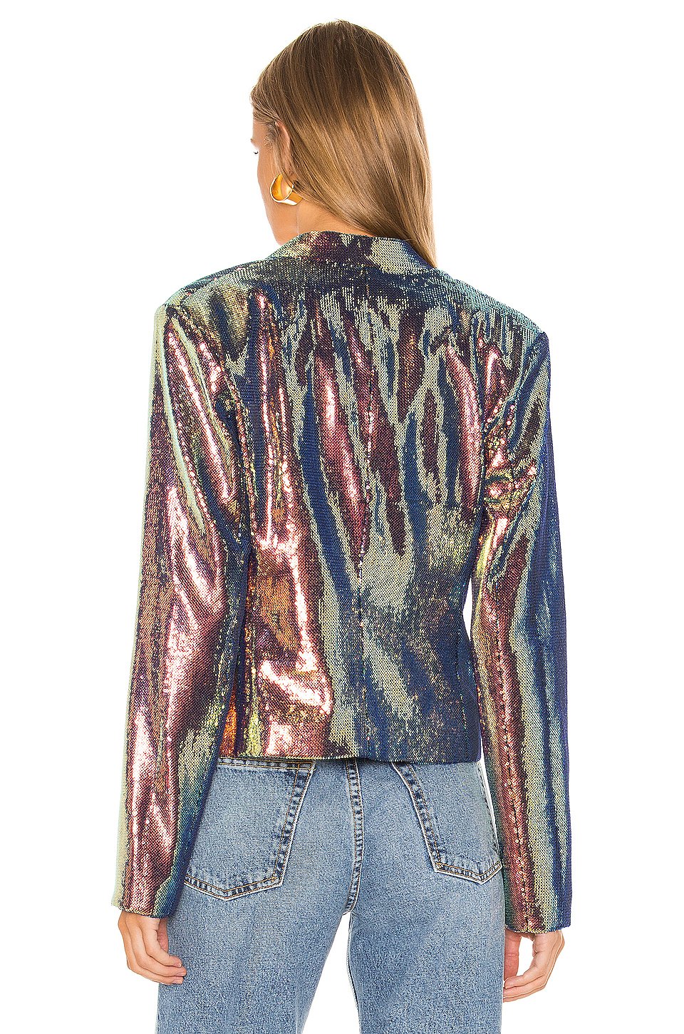 本体: 100% ポリエステル裏地: 100% ポリエステル, 3% スパンデックス低い液温で手洗いオープンフロントサイドにフェイクウェルトポケットパッド入りショルダーSequin embellishments allover