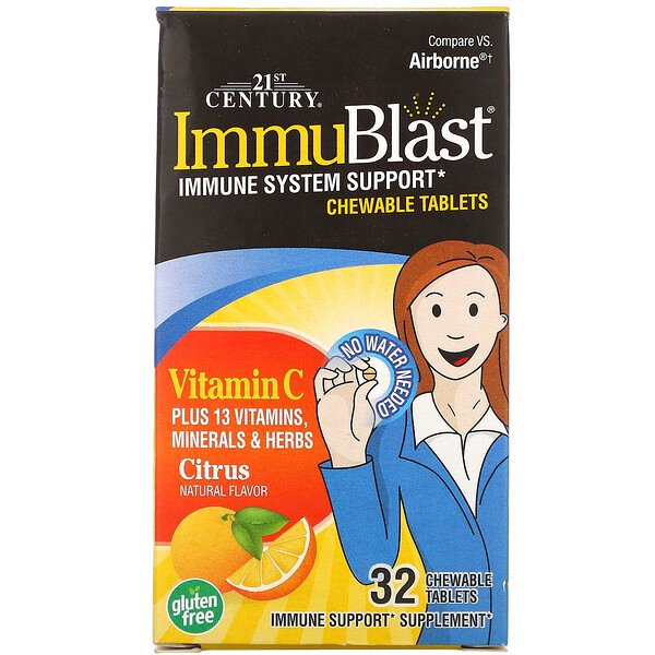 21st Century®(21世紀ヘルスケア)ImmuBlast®(イミュブラスト)のチュアブルタブレットは、水なしで簡単にお召し上がりいただけます。