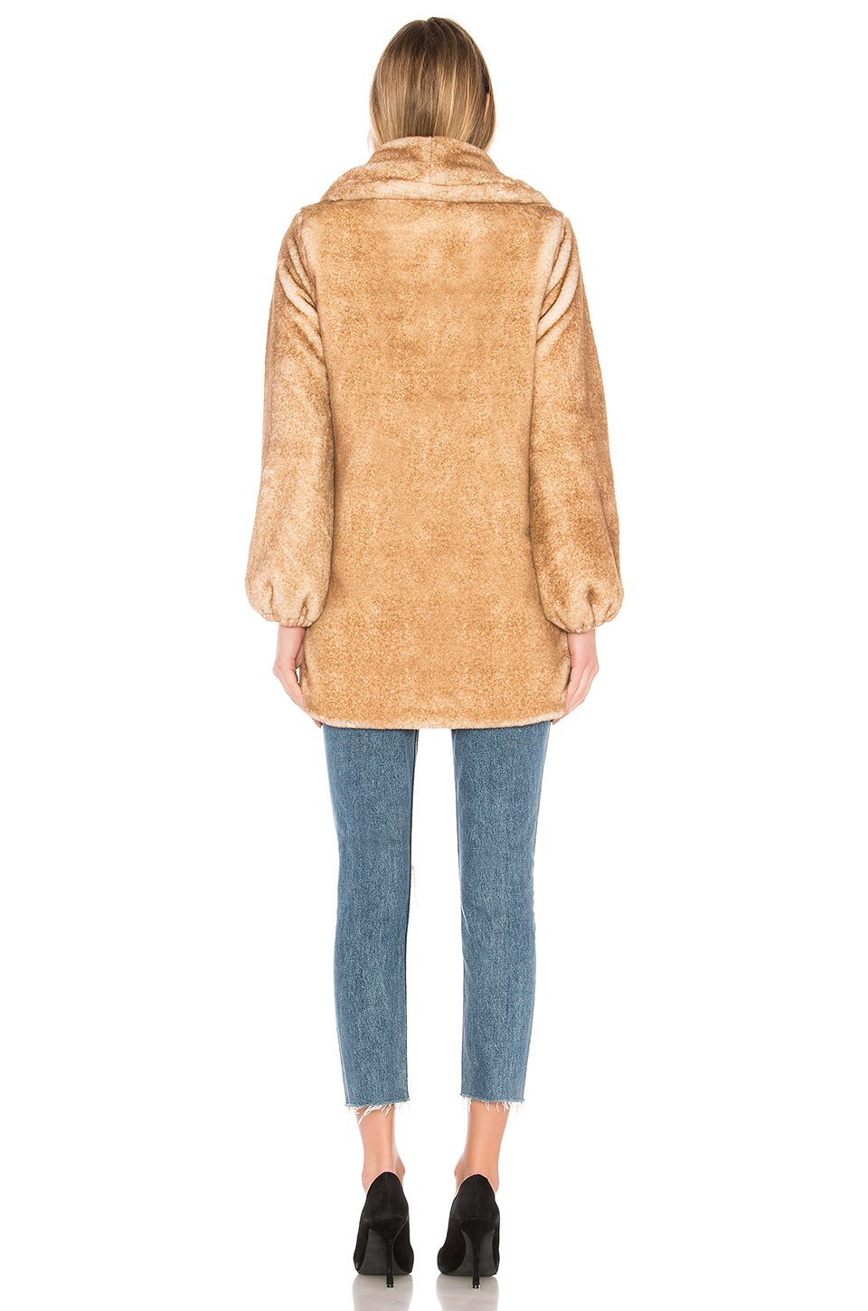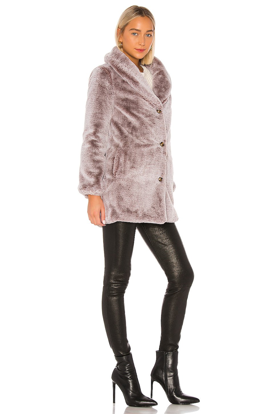 フェイクファー: 100% ポリエステル裏地: 100% ポリエステル, 5% スパンデックスドライクリーニングのみフェイクファーフロントにボタン留め具サイドにウェルトポケット伸縮性のある腕の開口部