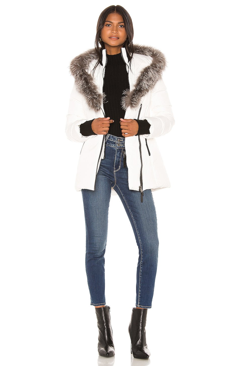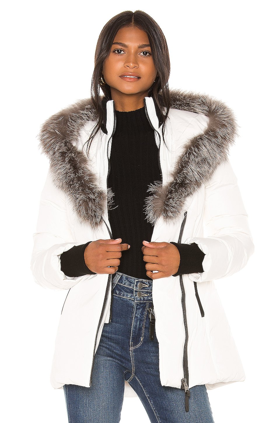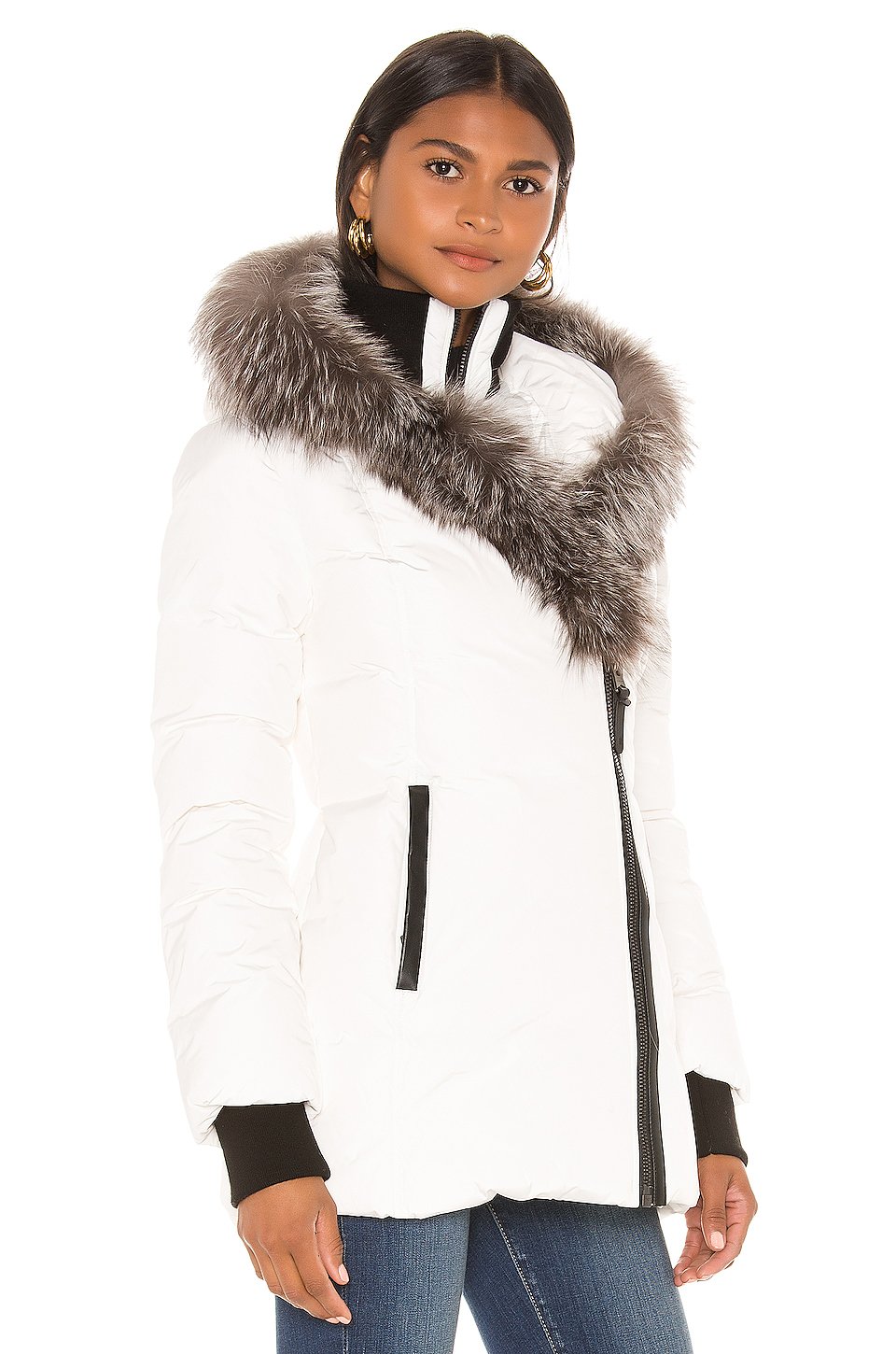 Self & Lining: 100% polyFill: 90% duck down 10% feathersTrim 1: 45% wool 45% acrylic 10% spandexTrim 2: genuine leatherFur: real natural silver fox furファー原産国: フィンランドプロのレザークリーニングのみAsymmetrical front zipper closure with additional inner zipper closureInner bib with ribbed collarRibbed storm cuffsサイドにジッパーポケット輸入品このアイテムは米国外へ発送できません。