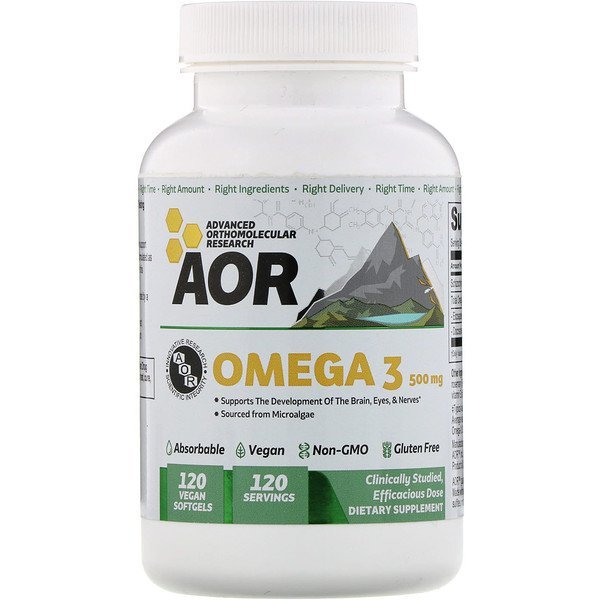 商品説明 Right Amount – Right Ingredients – Right Delivery – Right Time Innovative Research – Scientific Integrity Supports The Development of The Brain, Eyes, & Nerves Sourced from Microalgae Absorbable Vegan Non-GMO Gluten Free 120 Servings Clinically Studied, Efficacious Dose Dietary Supplement GMP Manufacturing Quality Assured Independent TestingDiscussion: The omega-3 fatty acids in Omega 3 1000 help support healthy cardiovascular and brain function. Omega 3 1000 is formulated as a softgel using AOR’s patent pending Vsoftgel technology for this fat-soluble nutrient. ご使用の目安 Take 1 softgel daily with/without food, or as directed by a qualified health care practitioner. 成分その他 Vsoftgel (tapioca starch, glycerin and purified water), rosemary (rosmarinus officinalis) extract (to preserve freshness), sunflower oil vitamin E tocopherols (preservative) and ascorbyl palmitate (preservative).AOR guarantees that all ingredients have been declared on the label. Made without wheat, gluten, soy, corn, nuts, peanuts, sesame seeds, sulfites, mustard, dairy, eggs, fish, shellfish or any animal by-product. 警告 Caution: Consult your physician before use if you are pregnant, lactating, have a medical condition, or are taking any medication. Keep out of reach of children.Do not use if seal under cap is broken.Store in a cool, dry place. 免責事項 hfl8.comでは、製品情報や画像は最新のものを提供するように努めてはおりますが、メーカーでの急な変更の際に、サイトの更新に間に合わない場合があります。