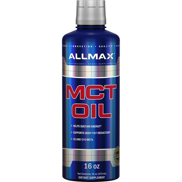 Science Innovation Quality Results Professional Grade Supplements Helps Sustain Energy Supports Body Fat Reduction C8 and C10 MCT’s Dietary Supplement Purity & Potency Quality Guaranteed Tested Lab Tested – Every Lot Gluten Free Tested cGMP Registered Facility Vegetarian Allmax MCT Oil is the perfect addition to a Ketogenic lifestyle and a great way to add healthy fats into your diet. Medium chain triglycerides (MCTs) are naturally occurring fats in coconut and palm kernel oils. MCTs are easily absorbed and metabolized by the body and aids in triggering your body to think of fat as energy rather than something for storage.