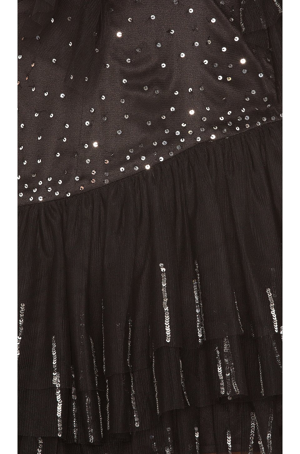 100% ポリエステルドライクリーニングのみ裏地付き隠れたバックジッパークロージャーラッフルディテール全面にスパンコールの装飾輸入品