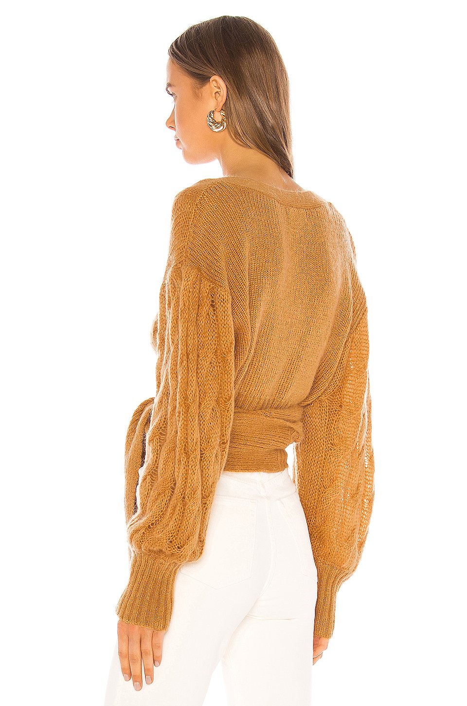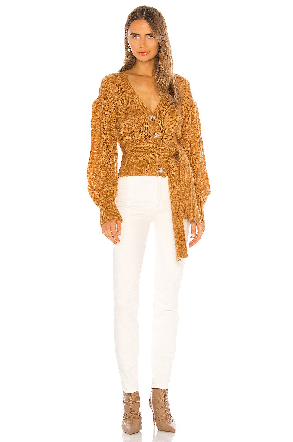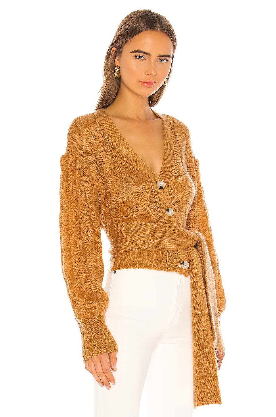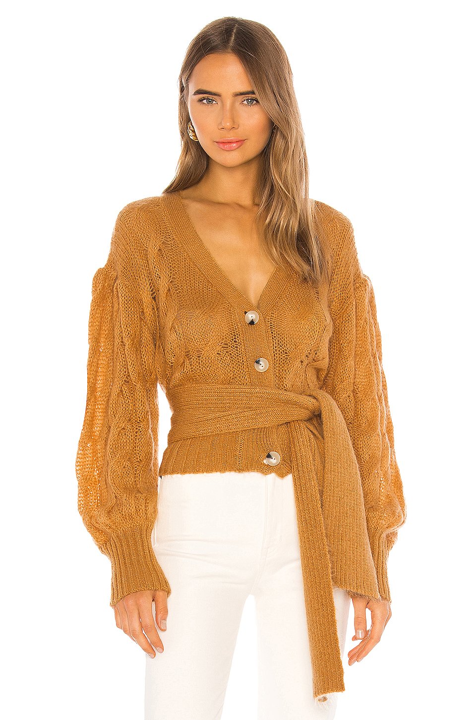 40% アクリル, 30%モヘア, 30% ポリアミドドライクリーニングのみフロントにボタン留め具オープンニットウエストリボン付きBalloon sleeve輸入品