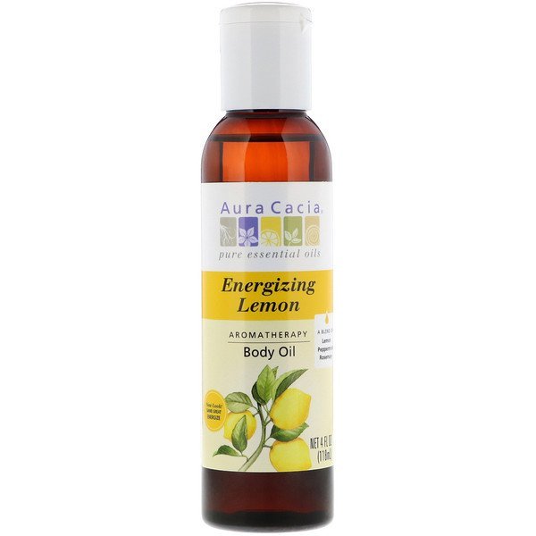 Pure Essential Oils A Blend of Lemon, Peppermint, Rosemary New Look! Same Great Energize Tested & Verified for Purity Not Tested on Animals No Synthetic Ingredients Paraben and Petroleum-FreeThe Authentic Aromatherapy Experience…Aura Cacia’s Energizing Lemon evokes a pep in the step and sense of familiar happiness found on a warm summer day. A crafted blend of 100% pure plant-derived oils will nourish your skin and provide a smooth, silky glide during massage. Create an at-home spa treatment that energizes the senses, refreshes the body and revitalizes the spirit.-A Blend of 100% Pure Essential Oils- Lemon (sheering) Peppermint (refreshing) Rosemary (invigorating)