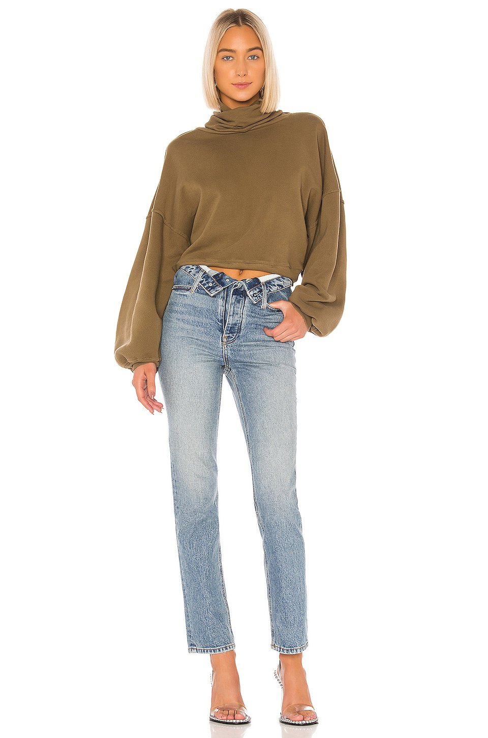 100% コットンフレンチテリーファブリックバルーンスリーブ折り返しのネックラインアメリカ製