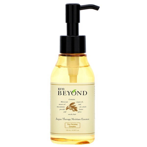 EcoBeyondEco Farming ComplexDermatologically TestedNo Paraben AddedMinimum Chemical ColorantsEco Beauty Lab.Contains Moroccan argan oil, monoi oil, and macadamia oil, which provide luster and gloss on dry hair.This fresh hair essence is quickly absorbed onto dry hair to give moisture and shiny look, which also makes your hair tranquil and healthier.Beyond Argan Therapy LineThis is a glossy and moisturizing specific care line. This line will deliver deep nutrition and a shiny look to dry hair through Moroccan Argan Oil, Monoi Oil, and Macadamia Ternifolia Seed Oil.Moroccan Argan OilThe product contains oil from Moroccan Argan fruit, which is called “a tree of life”. This component gives abundant nutrition to your hair.Monoi Oil, Macadamia Ternifolia Seed OilThe product contains Macadamia Ternifolia Seed Oil as well as Monoi Oil, which is a blended mixture of coconut oil and Tiare Flower. These components helps to give a moisturizing and shiny look to your hair.Eco Farming Complex(Complex consists of Alchemilla Vulgaris Extract, Calendula Officinalis Flower Extract and Althaea Officinalis Root Extract)Formulated with eco ingredients grown on the healthy land unpolluted by any chemical fertilizer or pesticides, the Eco Farming Complex containing items help to soothe the skin and leave it soft and thoroughly moisturized.