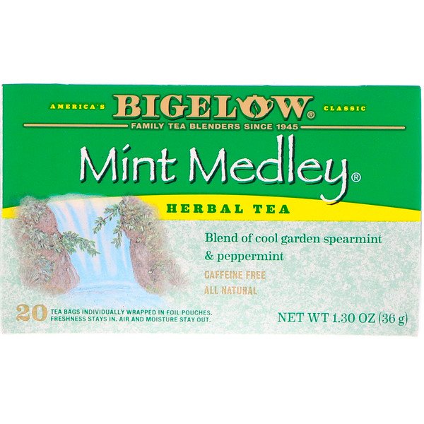 America’s Classic Family Tea Blenders Since 1945 Blend of Cool Garden Spearmint & Peppermint All Natural 20 Tea Bags Individually Wrapped in Foil Pouches Freshness Stays In. Air and Moisture Stay Out. K-Parve Gluten-Free Non-GMO Compromised QualityOur Family is Proud of Our RecipeEach ingredient has been carefully selected by the Bigelow family to deliver an uncompromised tea experience….Because Flavor MattersOur family selects ingredients so carefully that they must protect them in foil to allow you to experience their full Flavor • Freshness • Aroma.Carefully Selected IngredientsOur family uses only the highest quality mint which is why our partnership with out mint farmers has existed for over 30 years. These American family farms share the same passion and best in class standards as we do. They go to great lengths to care for their crops using the most natural methods of farming. Our mint is simply second to none.The Biglow Family