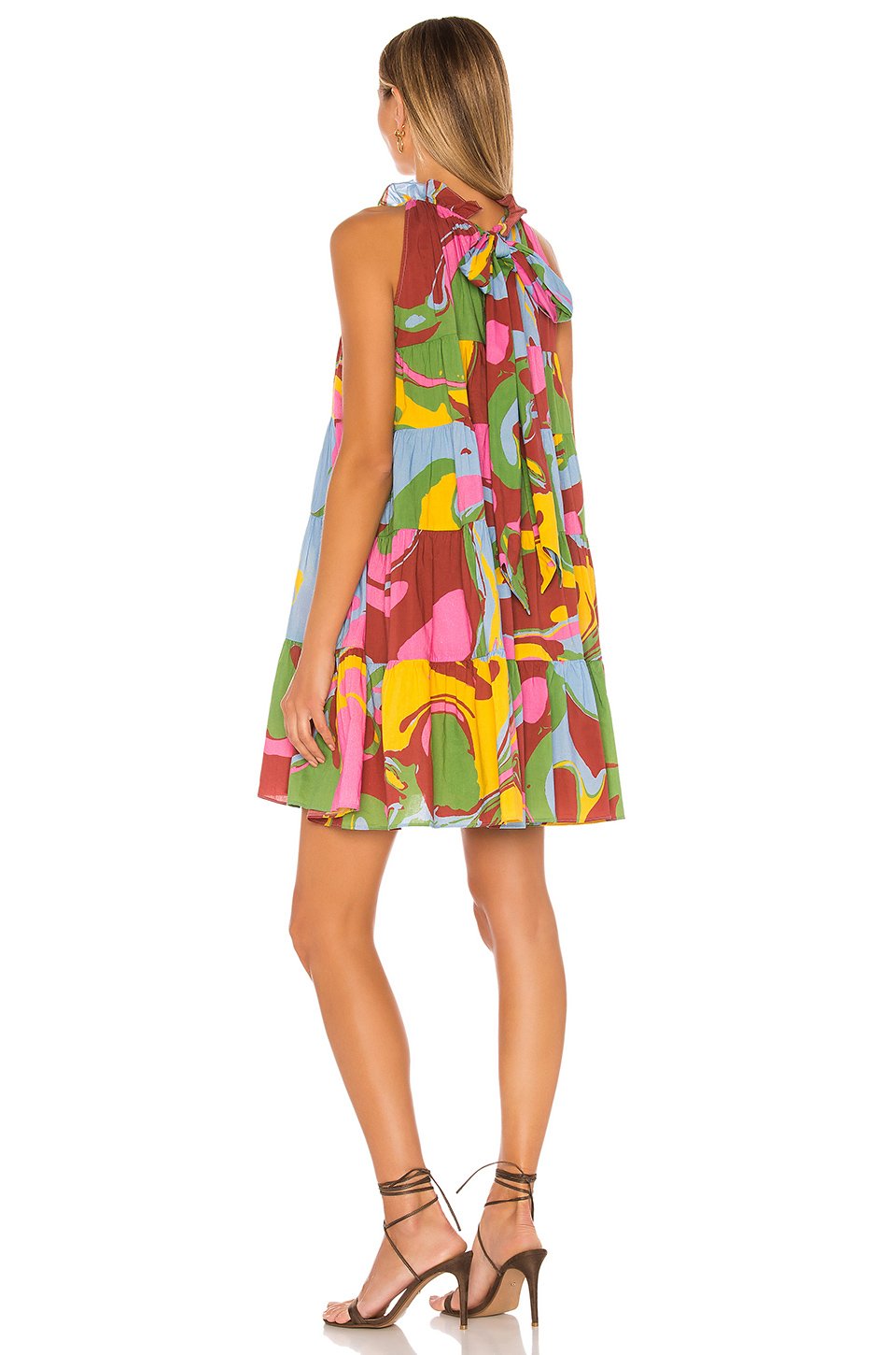 コットン混紡裏地無しプルオンスタイリング背中で留めるリボン結びのクロージャーティアードラッフルヘム
