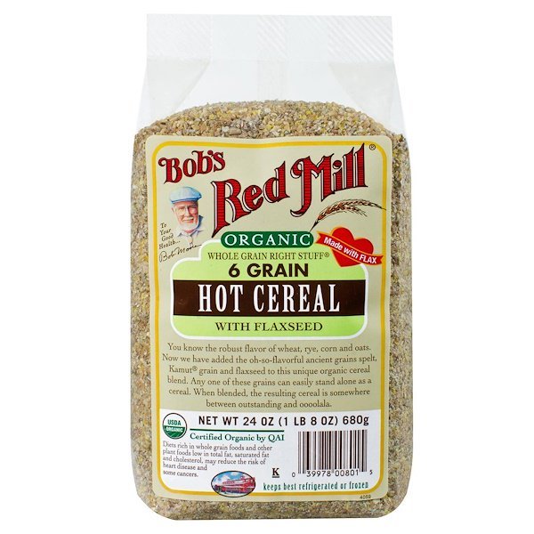 商品説明 To Your Good Health… Bob Moore Made with Flax USDA Organic Certified Organic by QAI KosherYou know the robust flavor of wheat, rye, corn and oats. Now we have added the oh-so-flavorful ancient grains spelt, Kamut grain and flaxseed to this unique organic cereal blend. Any one of these grains can easily stand alone as a cereal. When blended, the resulting cereal is somewhere between outstanding and oooolala. ご使用の目安 Keeps best refrigerated or frozenCooking InstructionsBring 3 cups water and 1/4 tsp salt to a boil and add 1 cup Bob’s Red Mill Right Stuff Cereal. Reduce heat to low. Cover and cook 10 to 20 minutes (depending on how chewy you like your cereal). Stir occasionally. Remove from heat and let stand covered for a couple of minutes. Makes about 3 cups cereal.Microwave InstructionsIn large bowl, combine 1/4 cup Bob’s Red Mill Right Stuff Cereal and 3/4 cup water. Cover and microwave on high for 3 to 5 minutes. Let stand for 2 minutes. Makes 1 serving. 成分その他 有機全粒小麦、有機全粒ライ麦、有機トウモロコシ、有機全粒小麦、オーガニック全粒穀物、有機全粒コムラサン小麦および有機亜麻仁。
