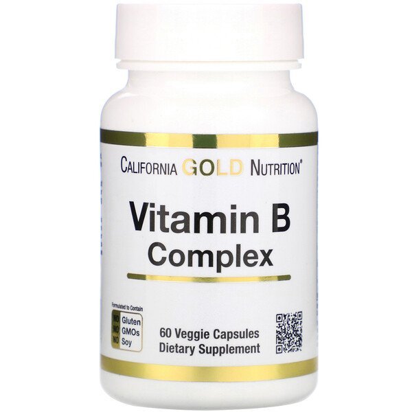 * California Gold Nutrition Bコンプレックスには、以下の必須ビタミンB群のブレンドが含まれています: チアミン (B1)、リボフラビン (B2)、ナイアシン (B3)、ピリドキシン (B6)、葉酸 (B9)、ビオチン (B7) 及びパントテン酸 (B5) 。