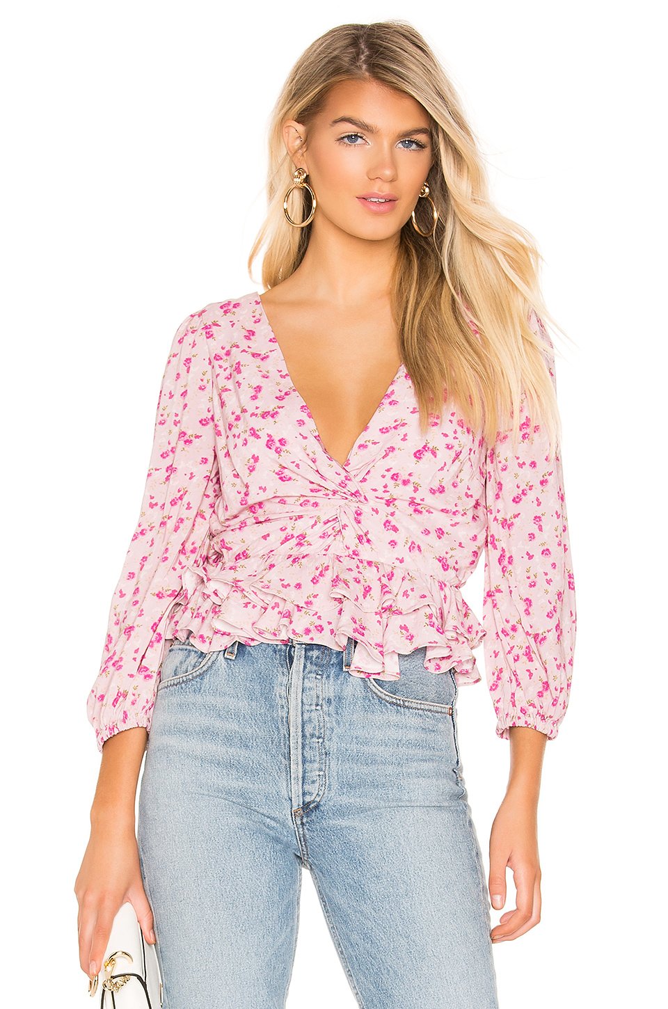 本体 & 裏地: UBSX_0 レーヨンフロントのツイストディテールラッフル付ヘムゴム入りカフ輸入品