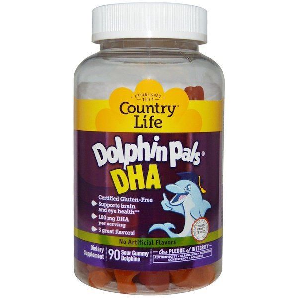 Country Life, ドルフィンパルズ(イルカの友達), DHA, 優れた3種の風味, 90グミ(酸っぱいグミドルフィン)