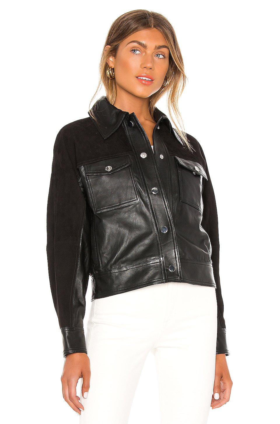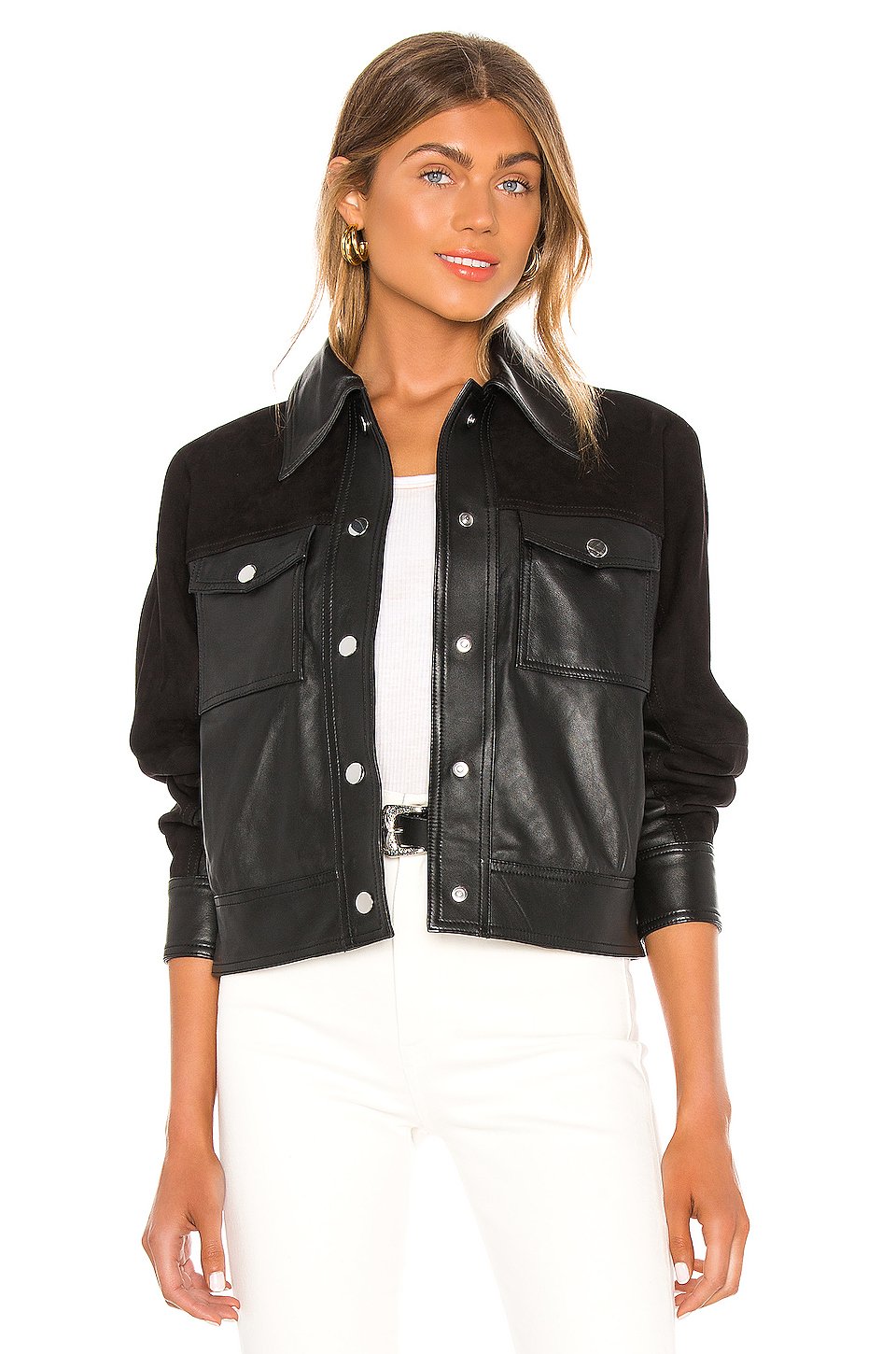 本体: 100% レザー裏地: 100% ポリエステルプロのレザークリーニングのみフロントスナップボタン留め具フラップポケットにスナップボタンのクロージャーSnap button closure at cuffsTonal suede yoke輸入品