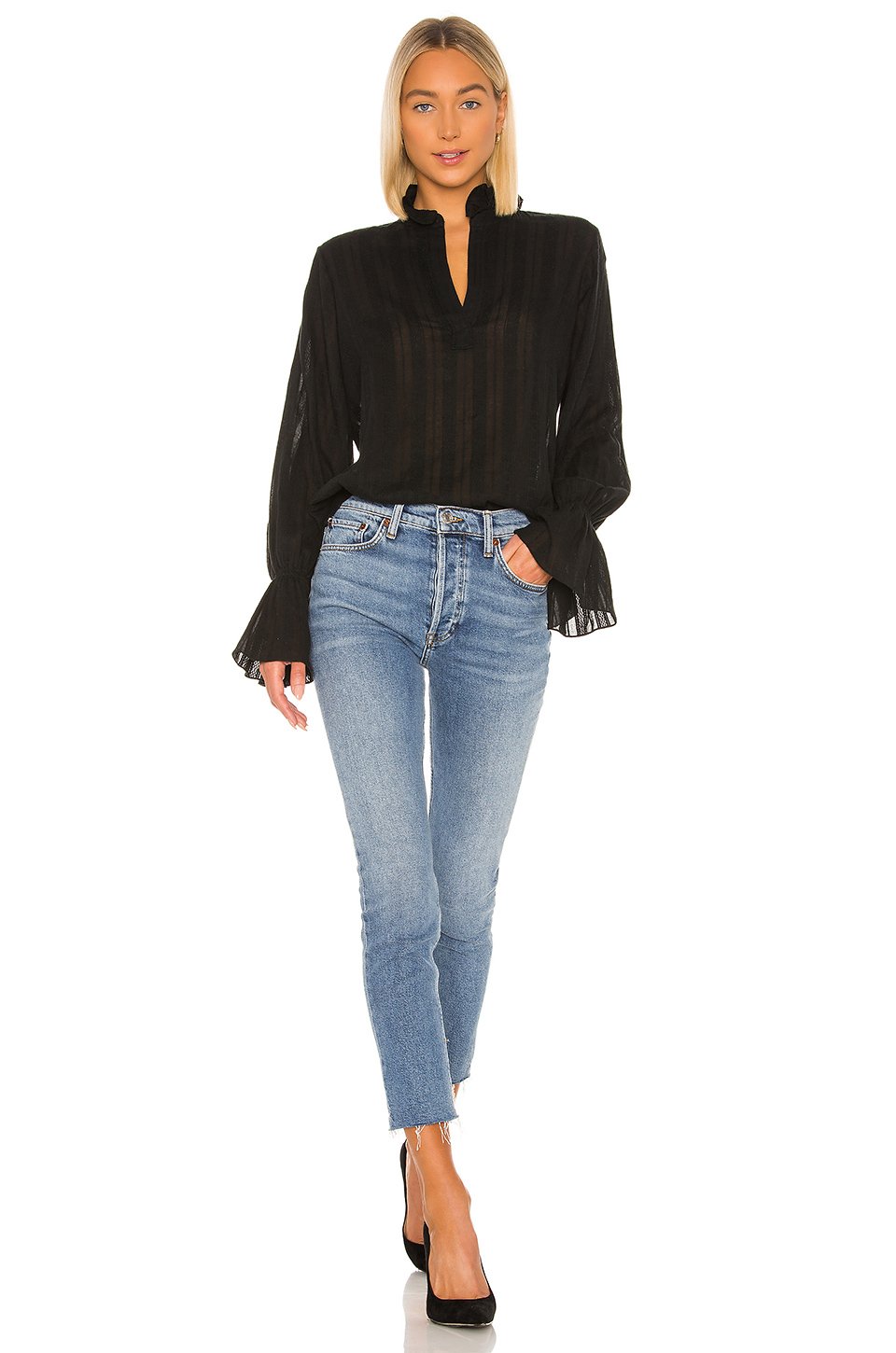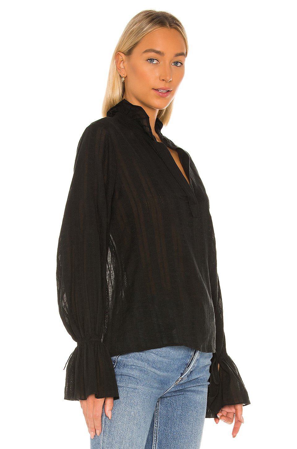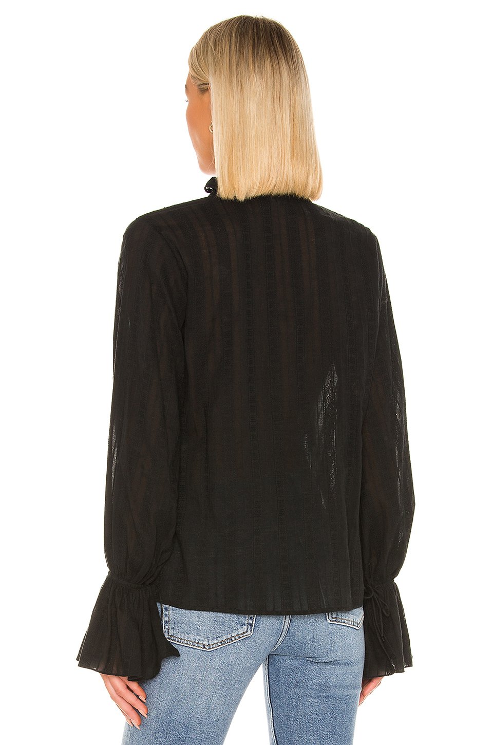 コットン混紡ドライクリーニングのみSemi-sheer fabric with embroidery detail throughout袖口にリボンディテールラッフル付トリム輸入品