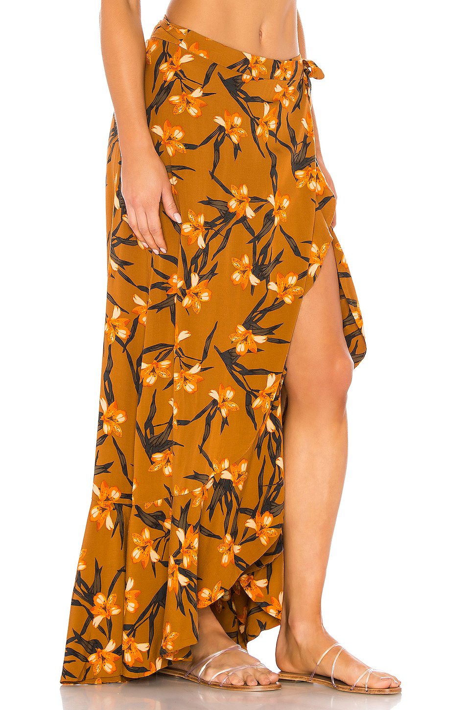 UBSX_0 レーヨン低い液温で手洗い裏地無しリボン留め具付ラップスタイルスカートの長さは約97 cm輸入品