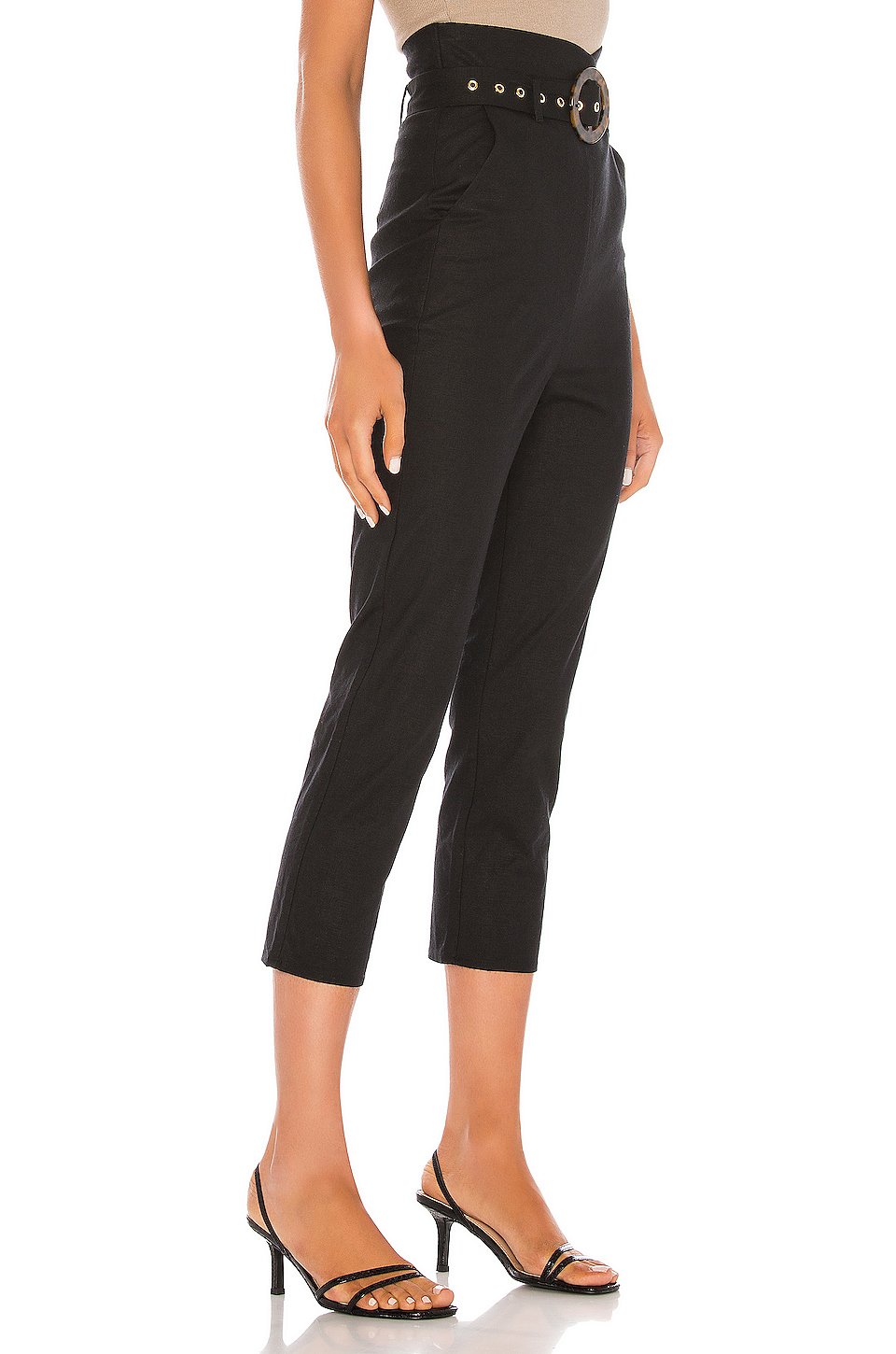55% リネン, UBSX_0 レーヨン, 3% エラスタン低い液温で手洗い隠れたバックジッパークロージャーDetachable belt with acrylic ring buckleサイドにスラントポケット膝周り36 cm、裾周り33 cm輸入品