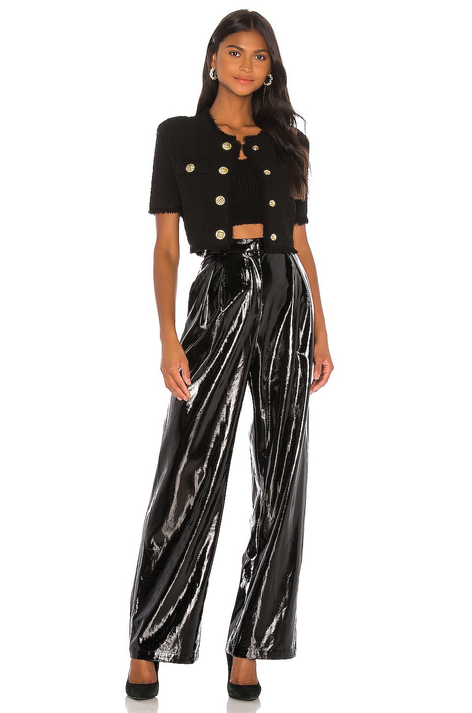 本体: 100% ポリエステル, 8% スパンデックス裏地: 100% ポリエステルドライクリーニングのみジップフライとフック&バーの留め具サイドシームポケットフェイクパテントレザー膝周り51 cm、裾周り51 cm輸入品