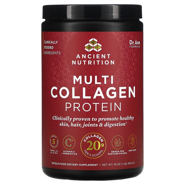 5種類の食物由来コラーゲン配合I型、II型、III型、V型、X型自然食品由来の栄養補助食品肌に爪に節々にAxe(アックス)博士開発サポート:美容と節々の健康にマルチコラーゲンプロテインAncient Nutrition(エンシェントニュートリション)は、現代人に足りない手軽に摂れるシンプルな自然食品の栄養素をお届けし、あなたの美しさを内側から解き放ちます。
