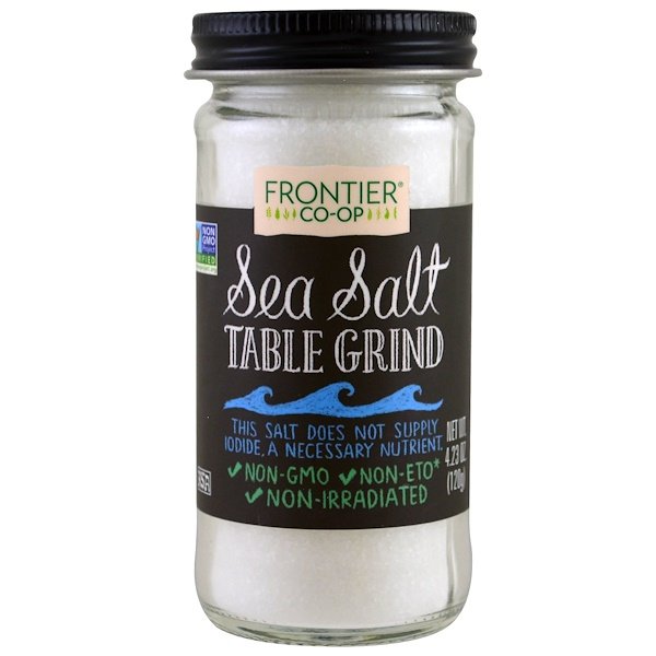 非遺伝子組み換えプロジェクト認証 コーシャ この塩はヨウ化物、必須栄養素を含んでいません 非遺伝子組み換え ETO不使用* 非照射 *ETO(酸化エチレン)はスパイス業界で一般的に使用されている滅菌用化学物質ですが、Frontier Co-opでは全く使用されていません。