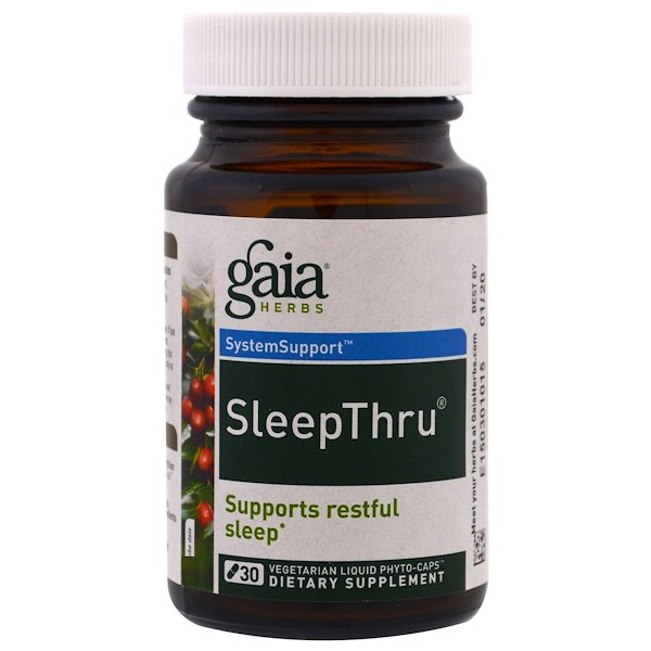 Plant Intelligence SystemSupport Wake Up During The Night? Supports Restful Sleep Promotes Healthy Stress Levels – Magnolia & Ashwagandha Extracts Supports Normal Waking Energy – Ashwagandha & Jujube Date Meet Your Herbs Dietary SupplementSystemSupportAddressing the root cause of a systemic imbalance can restore your vitality. Gaia Herbs SystemSupport products help naturally restore your body’s harmony and balance.SleepThruGetting a complete night’s sleep is essential to overall health. SleepThru is a unique blend of herbs that supports restful sleep and healthy adrenal function. When the body’s stress pathways are naturally supported, one can rest more easily and consistently. This formula promotes restorative sleep all night long, allowing you to feel refreshed upon waking.The Gaia DifferenceLiquid potency, easy absorptionAlcohol-free, Liquid Phtyo-Caps U.S. Patent No. 6,238, 696 B1100% vegetarian, dairy free, no gluten-containing ingredientsEasily digestible plant-derived capsule