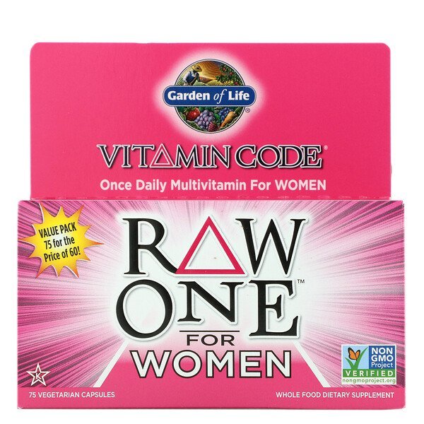 Raw Whole Food SupplementLive Probiotics & Enzymes24 Organically Grown Fruits & VeggiesNo Binders or FillersKosherNon GMO Project VerifiedGluten FreeRaw®VegetarianWhole Food Dietary SupplementWhat Raw MeansNo high heat, synthetic binders, fillers, artificial flavors, sweeteners, colors or additives commonly used in tabletsNon-GMO VerifiedIndependent, third party verification.Whole FoodRaw Food-Created Nutrients™ are blended in a base of organically grown fruits and vegetables together with food cofactors.Vitamin Code® Raw One™ For Women is whole food nutrition, specifically formulated to meet the unique needs of Women on-the-go.24 powdered organically grown fruits and vegetables add supporting antioxidants, vitamins and nutrient cofactors.Energy and MetabolismReproductive System HealthRadiant Skin and NailsLive Probiotics and Enzymes Support Healthy Digestion