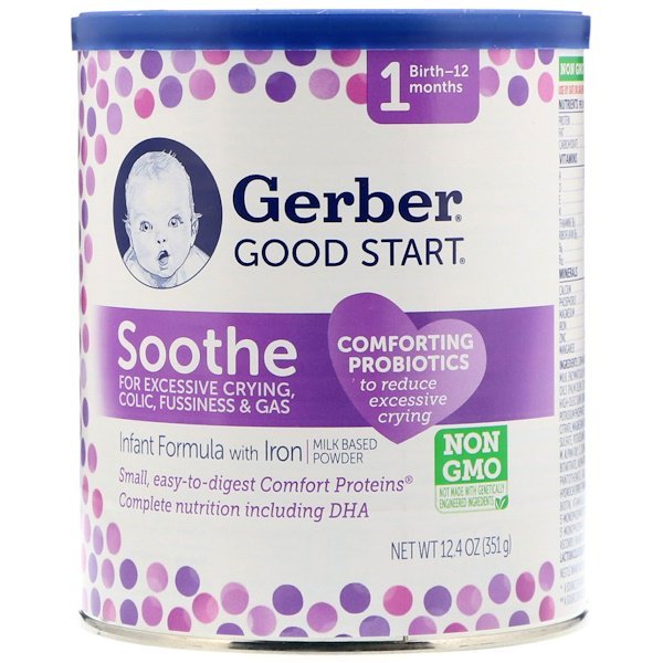 商品説明 乳児疝痛や、泣き・ぐずり泣き・おならが止まらない乳児用のフォーミュラ 泣きを止めるための体に優しいプロバイオティクス 粉ミルク GMOフリー(遺伝子組み換え成分不使用) 簡単に吸収される小さなタンパク質 DHA配合の完全栄養食 乳児にとって母乳が一番乳児疝痛は、乳児がかかりやすい病気であることを忘れないようにしてください。これは、消化器に十分な善玉菌が生息しないことで生じる可能性がある病気です。GerberのGood Start Sootheフォーミュラには、授乳時の乳児疝痛を半減させることが臨床的に証明されている、プロバイオティクスの有効性を持つラクトバチルス・ロイテリ菌が含まれています。GerberのGood Start Sootheフォーミュラは、完全な栄養素を供給しつつ、泣き・ぐずり泣き・おならが止まらない乳児を癒すように作られています。乳児でも簡単に吸収する、小さなタンパク質が含まれています。ぐずり泣きやおならが止まるよう、30%のラクトースを配合した炭水化物が含まれています。専門家が推奨するDHAは、脳や目の発達をサポートします。 ご使用の目安 準備と使用:警告:お子様の健康には、十分に注意した準備と使用、ならびに以下の保管方法を守ることが大切です。これらの指示に従わないと、健康を著しく損なう場合があります。お子様に適したフォーミュラについては、かかりつけ医にご相談ください。粉末状の乳児用フォーミュラは消毒されていないため、未熟児や、免疫に関する問題を抱える乳児には、医師の指示と監視がない限り、与えないでください。フォーミュラを準備する際は、必ず事前に手と用具を洗ってください。水道水またはボトル水を消毒または沸騰させる、ならびに用具を消毒するようおすすめします。この必要がない場合、かかりつけ医はそのように教えてくれます。沸騰水を使用する場合は1分間煮立たせ、室温まで冷ましてからフォーミュラを入れてください。手順1:適量の水をボトルに入れます。下の図をご参照ください。手順2:各2液体オンスの水に対し、すりきり一杯の粉末(8.7g)を入れます。(同封のスプーンのみご利用ください。フレームから外してご利用ください)手順3:ボトルに蓋をします。よく振ってからご使用ください。混ぜた直後にお子様に与えてください。与え始めてから1時間以内に飲ませるか、残した場合は捨ててください。混ぜる際の目安: およその分量 水量 粉末量 60ml(2 fl oz)のボトル 60ml(2 fl oz) すりきり一杯の粉末(8.7g) 120ml(4 fl oz)のボトル 120ml(4 fl oz) すりきり一杯の粉末を2スクープ 180ml(6 fl oz )のボトル 180ml(6 fl oz ) すりきり一杯の粉末を3スクープ 240ml(8 fl oz)のボトル 240ml(8 fl oz) すりきり一杯の粉末を4スクープ 成分その他 トウモロコシのマルトデキストリン、乳清タンパク質濃縮物(ミルクから、酵素的に加水分解された、ミネラルが還元されたもの)、植物油(パームオレイン、大豆、ココナツおよび高オレイン酸ベニバナまたは高オレイン酸ヒマワリ)、およびクエン酸カリウム、塩化カルシウム、リン酸カルシウム、クエン酸ナトリウム、塩化マグネシウム、硫酸第一鉄、硫酸亜鉛、硫酸銅、ヨウ化カリウム、硫酸マンガン、セレン酸ナトリウム、m。アルピナ油*、c。ビタミンD3、ビタミンB12、タウリン、アスコルビン酸、アスコルビン酸、アスコルビン酸、アスコルビン酸、アスコルビン酸、アスコルビン酸、パルミチン酸、アラビノースパルミテート、混合トコフェロール、l-カルニチン、大豆レシチン、乳酸桿菌ロイテリ(dsm 17938)培養物からなる群から選択される、請求項1に記載の方法。 *アラキドン酸の源(アラ)。 **ドコサヘキサエン酸(dha)の供給源。 警告 外側のシールが破損している場合は使用しないでください。注意:必要な場合は、作ったばかりの新鮮なものをボトルに入れて冷蔵保存し、24時間以内に与えてください。冷蔵保存する場合は、温度を35~40ºF(2~4ºC)に保ってください。フォーミュラは、電子レンジなどで温めないでください。お子様がやけどする場合があります。保管方法:容器の蓋をしっかり閉めて保管し、1ヵ月以内にご使用ください。開封前・開封後の容器は、涼しく乾燥した場所に保管してください。過酷な環境では保管しないでください。上記の警告を守らない、あるいは100ºF(38ºC)以上のお湯を使用すると、プロバイオティクスの効果が得られなくなります。アレルギーの治療・管理用の製品ではありません。配送時に内容物が沈殿する場合があります。 免責事項 hfl8.comでは、製品情報や画像は最新のものを提供するように努めてはおりますが、メーカーでの急な変更の際に、サイトの更新に間に合わない場合があります。そのため、違うパッケージの商品が送られる場合がございますのでご了承下さい。当店の商品の新鮮さは保証致します。hfl8.comのサイト上に提示されている情報よりも、実際の商品にあるラベル、警告、使用方法を優先させてください。 メーカーのウェブサイトをご覧ください 栄養素 100