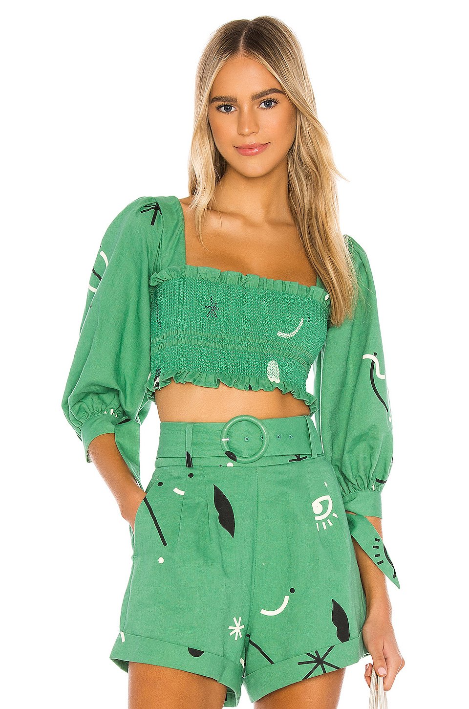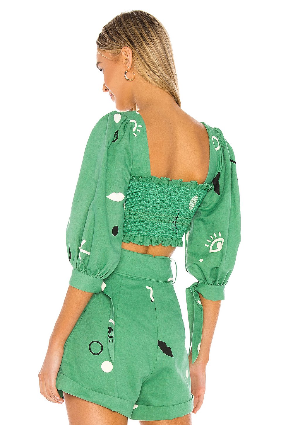コットン混紡刺繍飾りのボディスAdjustable cuff tiesPuff sleeve