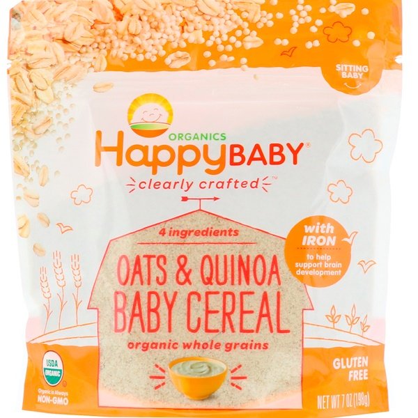 Happy Family Organics, クリアリークラフテッド、オーツ&キヌアベビーシリアル、198g(7oz)