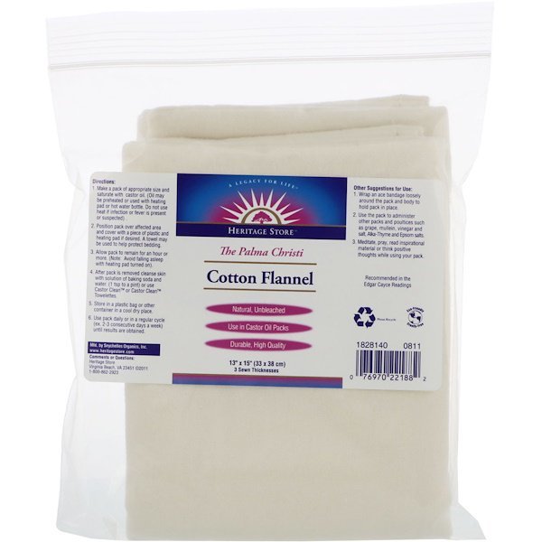 商品説明 人生の知恵 天然・未漂白 ヒマシ油パックで使用 耐久性・高品質 3重縫いの厚さ 環境に優しい 動物実験なし ご使用の目安 適切なサイズのパックを作り、ひまし油をたっぷり含ませます。(オイルは、加熱パッドまたは温水ボトルで予熱するか使用することができます。感染症や発熱があるか、疑わしい場合は熱を使わないでください。 患部の上にパックを配置し、必要に応じてプラスチックとヒートパッドで覆います。ベッドリネンを保護するには、タオルを使用します。 パックを1時間以上そのままにします。(注:ヒーターパッドをつけたまま寝ないでください。) パックを取った後、ベーキングソーダと水の溶液(小さじ1杯から500ml)で肌を浄化するか、キャスタークリーンタオルをお試しください。 涼しい乾燥した場所でビニール袋または他の容器に保管してください。 パックは、毎日または結果が得られるまで定期的な周期(週2〜3週間)でお使いください。他のお勧めの用途: パックがずれないようにするには、エースバンデージでパックを体に軽く巻きつけます。 ブドウ、ミューリン、酢、塩、アルカタイムやエプソム塩などの他のパックや湿布をつけるためにもこのパックをご使用できます。 パックを使っている間は、瞑想したり祈ったり、感動的な文書を読んだり、ポジティブ思考を持ちましょう。 免責事項 iHerbでは、製品情報や画像は最新のものを提供するように努めてはおりますが、メーカーでの急な変更の際に、サイトの更新に間に合わない場合があります。そのため、違うパッケージの商品が送られる場合がございますのでご了承下さい。当店の商品の新鮮さは保証致します。iHerbのサイト上に提示されている情報よりも、実際の商品にあるラベル、警告、使用方法を優先させてください。 メーカーのウェブサイトをご覧ください