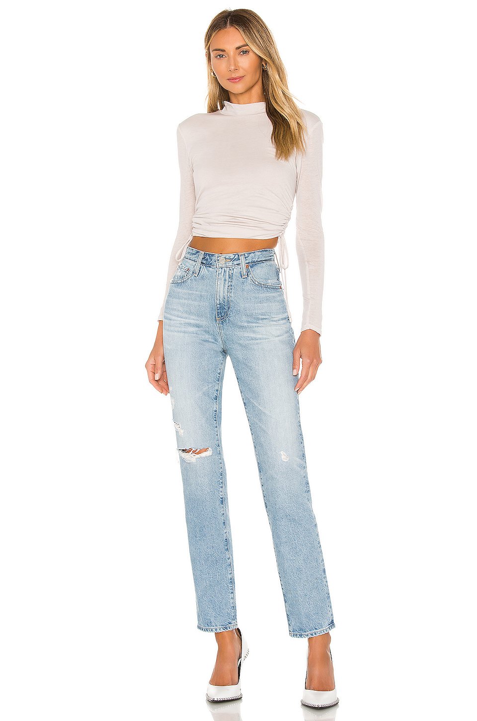 100% コットン低い液温で手洗いAdjustable side ruched detailモックネック輸入品