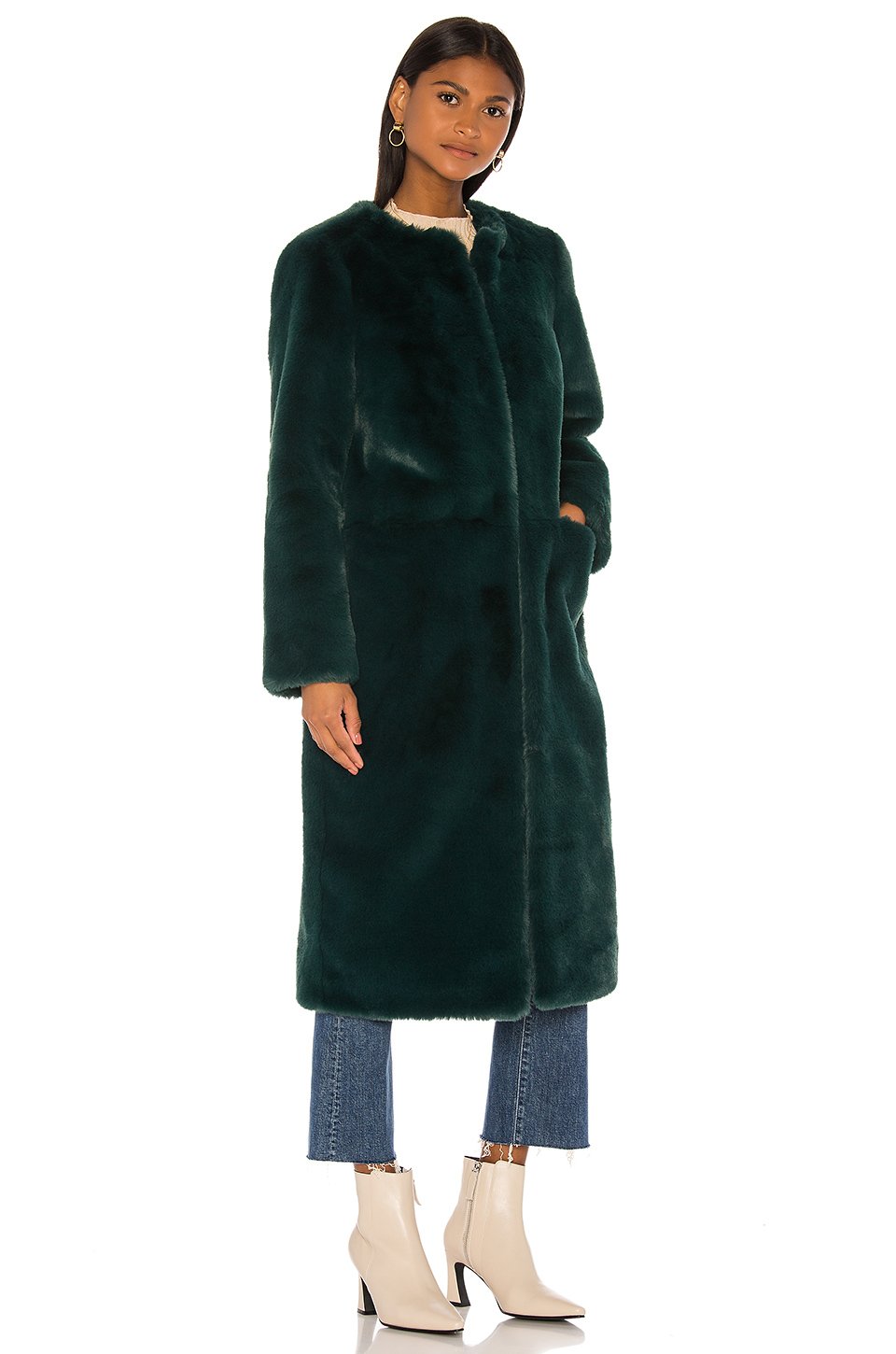 100% ポリエステルドライクリーニングのみフェイクファーフロントにホックの留め金サイドシームポケット輸入品
