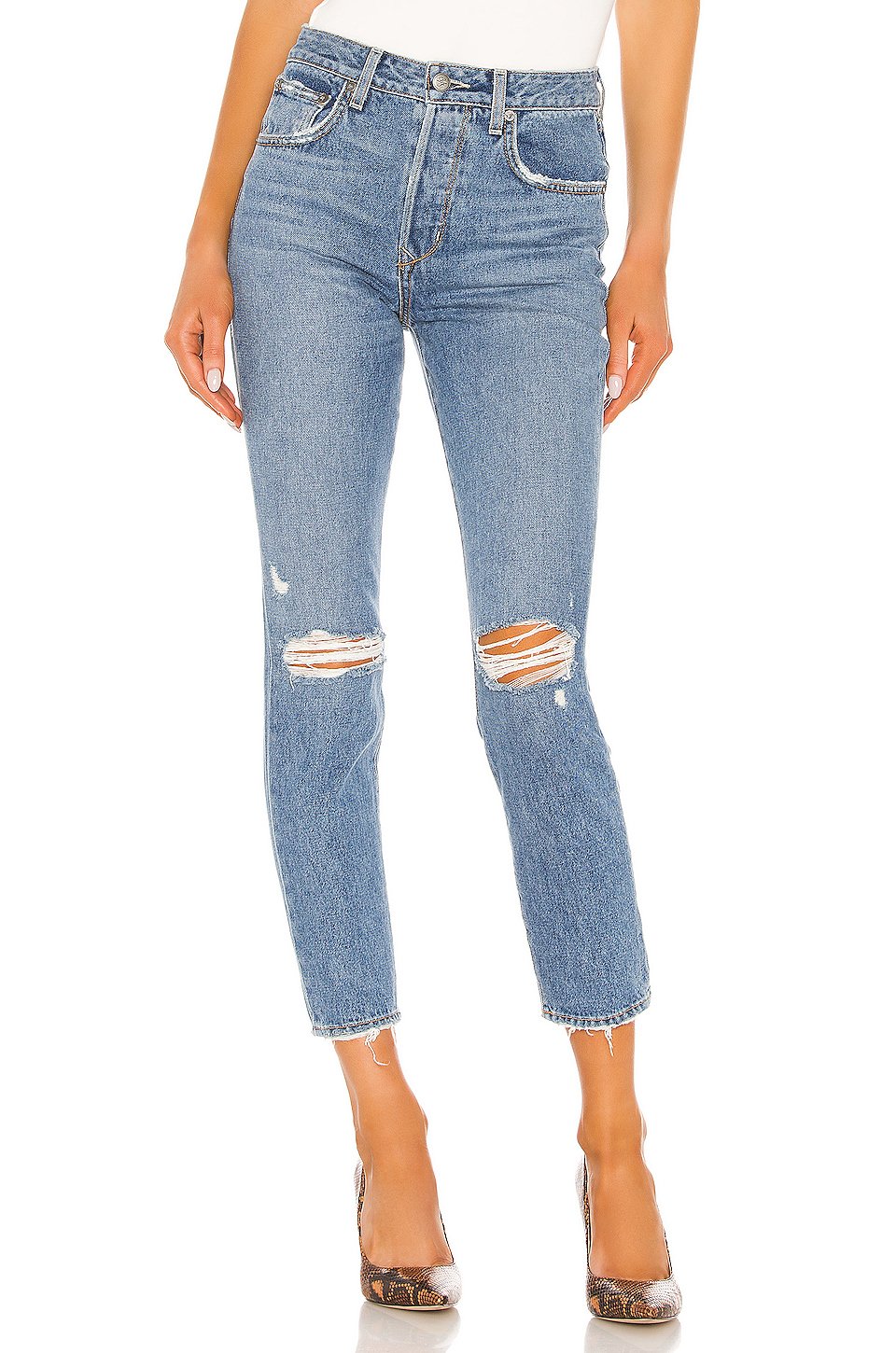 100% コットンボタンフライ5-ポケットデザイン控えめなウィスカーとフェード加工ダメージ加工膝周り33 cm、裾周り25 cmアメリカ製