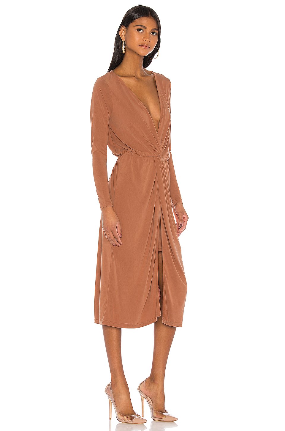 モデル着用サイズ S.ショルダーシームから一番短いヘムの長さは約81 cm、一番長いヘムまでの長さは約112 cm