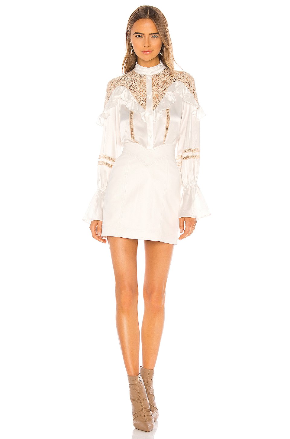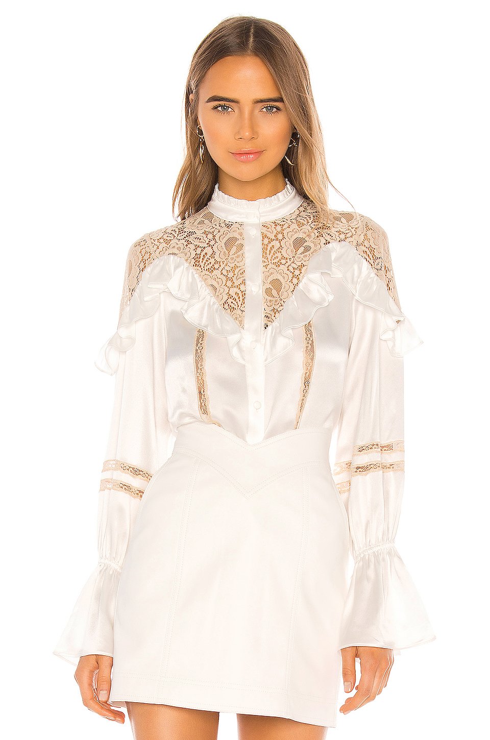 本体: 100% シルクトリム: 100% ポリエステルドライクリーニングのみフロントにボタン留め具ゴム入りベルスリーブレースとフリルのトリム輸入品