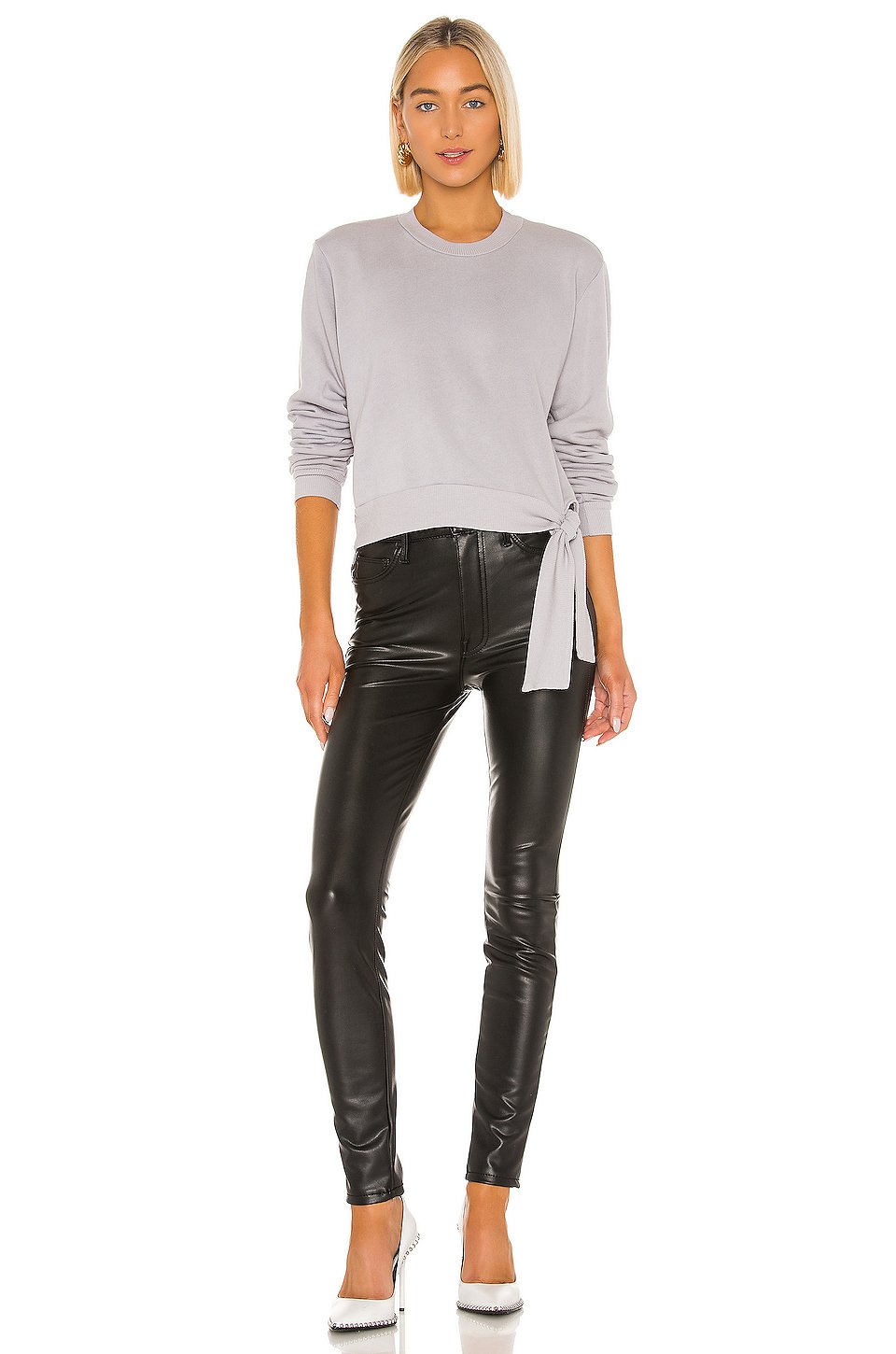 50% コットン, 50% モダルヘムにリボン結びフリース生地リブ編みの裾アメリカ製