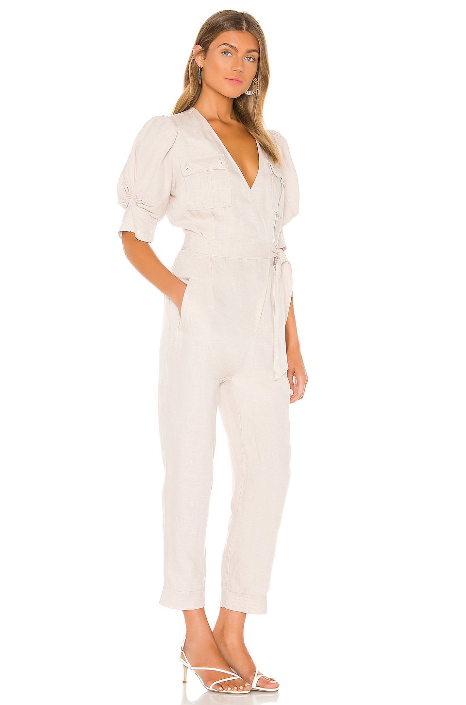 100%リヨセル, 49% リネン低い液温で手洗いSide wrap tie closure胸ポケットサイドにウェルトポケットPuff sleeve輸入品