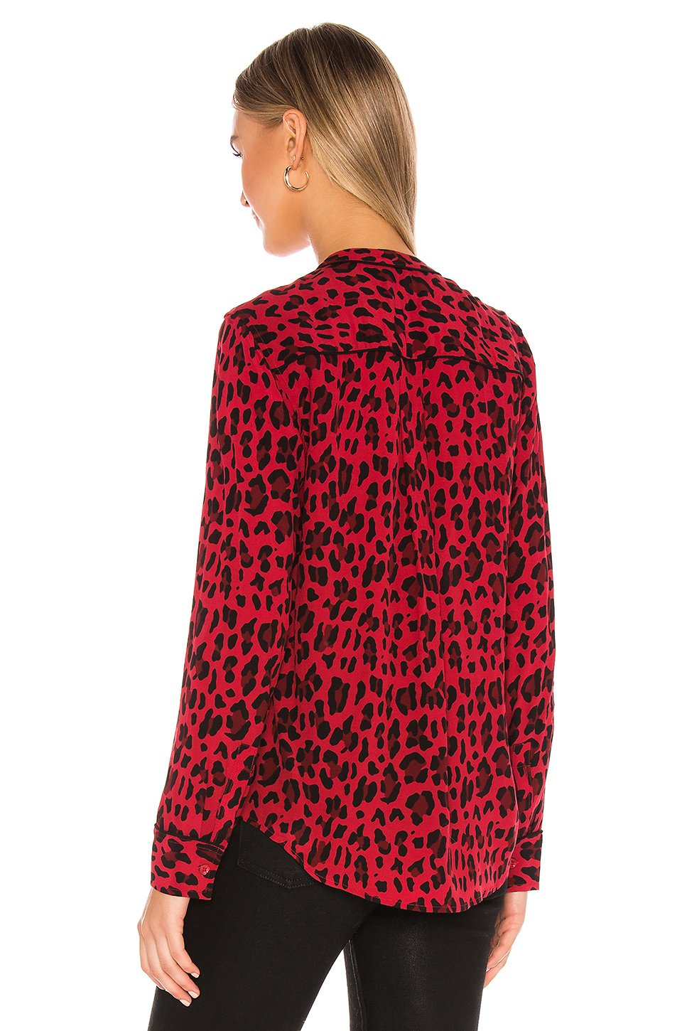 ビスコース混紡フロントにボタン留め具ボタン付カフ後ろが長いテールヘム