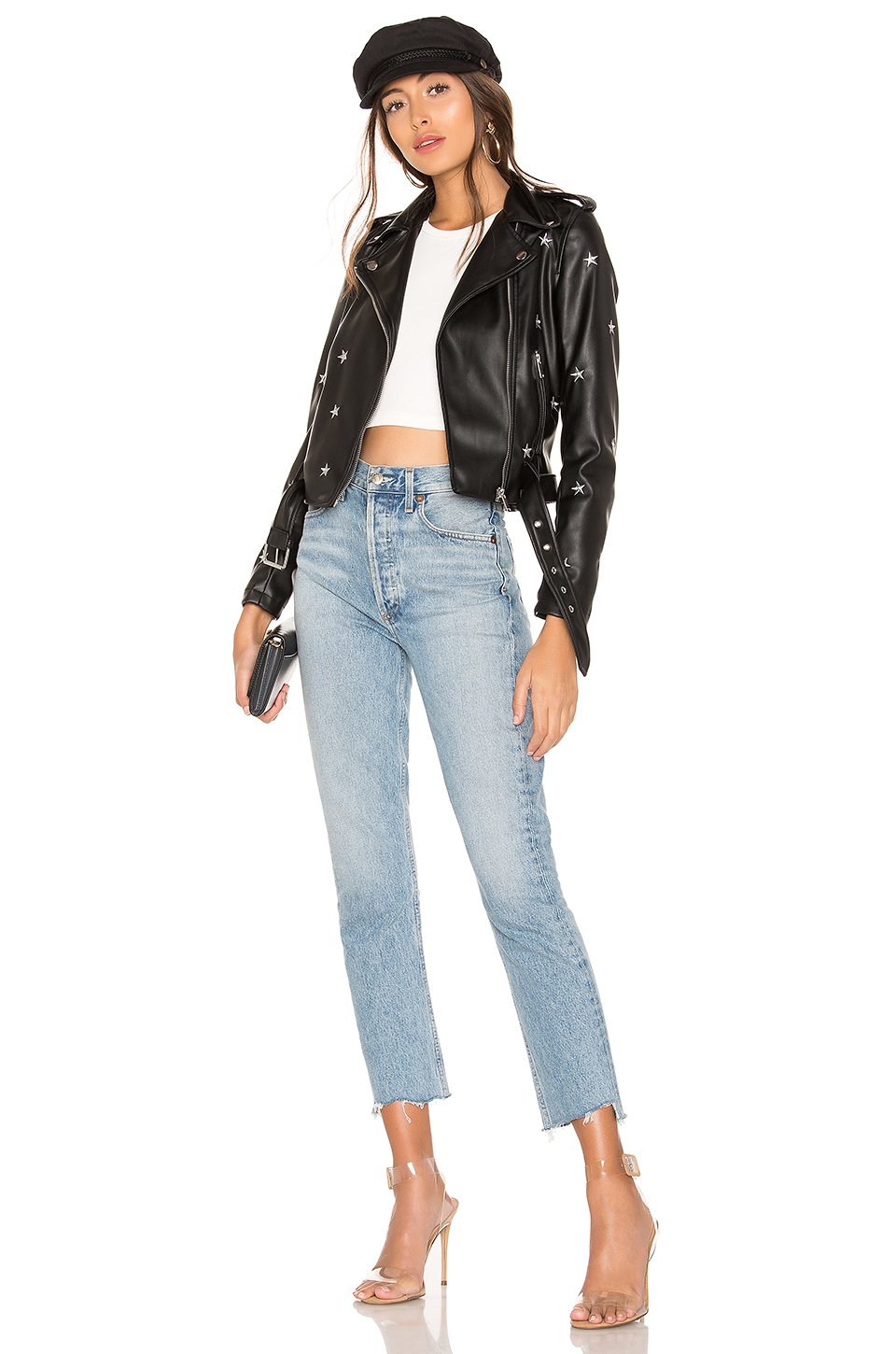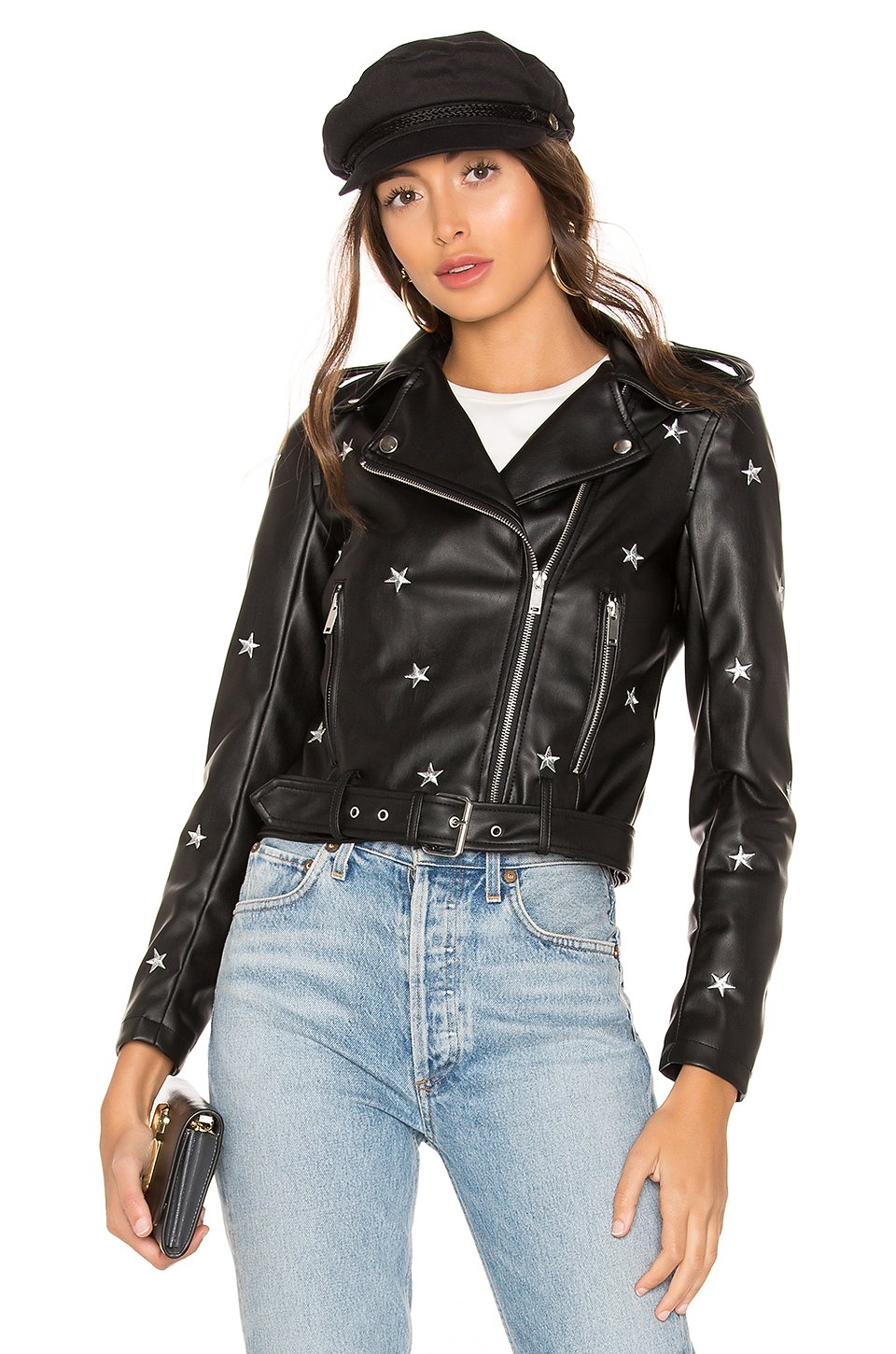 100% ポリエステル低い液温で手洗いフェイクレザーフロントにエクスポーズジッパー留め具露出したジップ留め具付きのサイドシームポケット調節可能なウエストベルト全面メタリック刺繍ディテール輸入品
