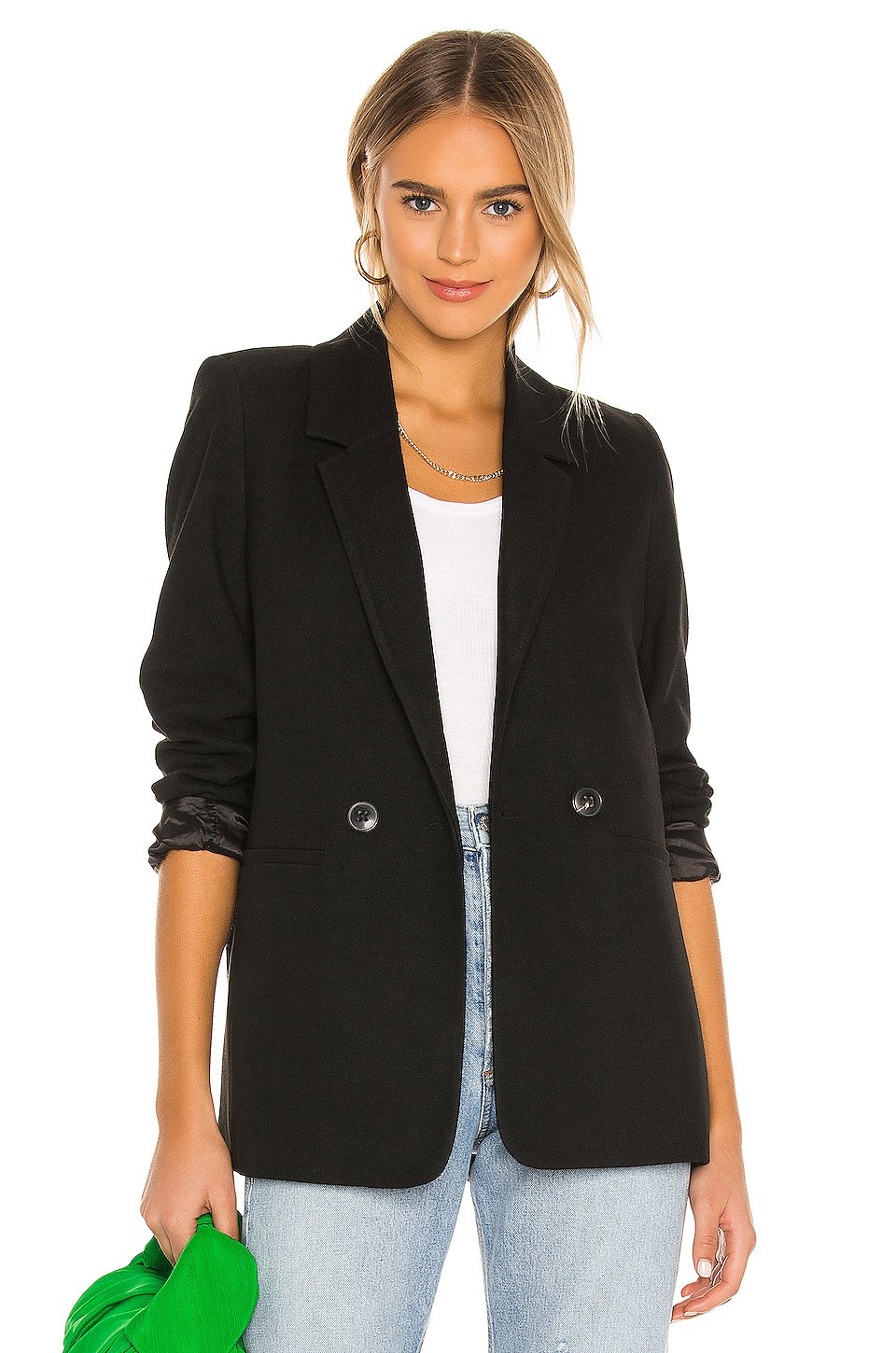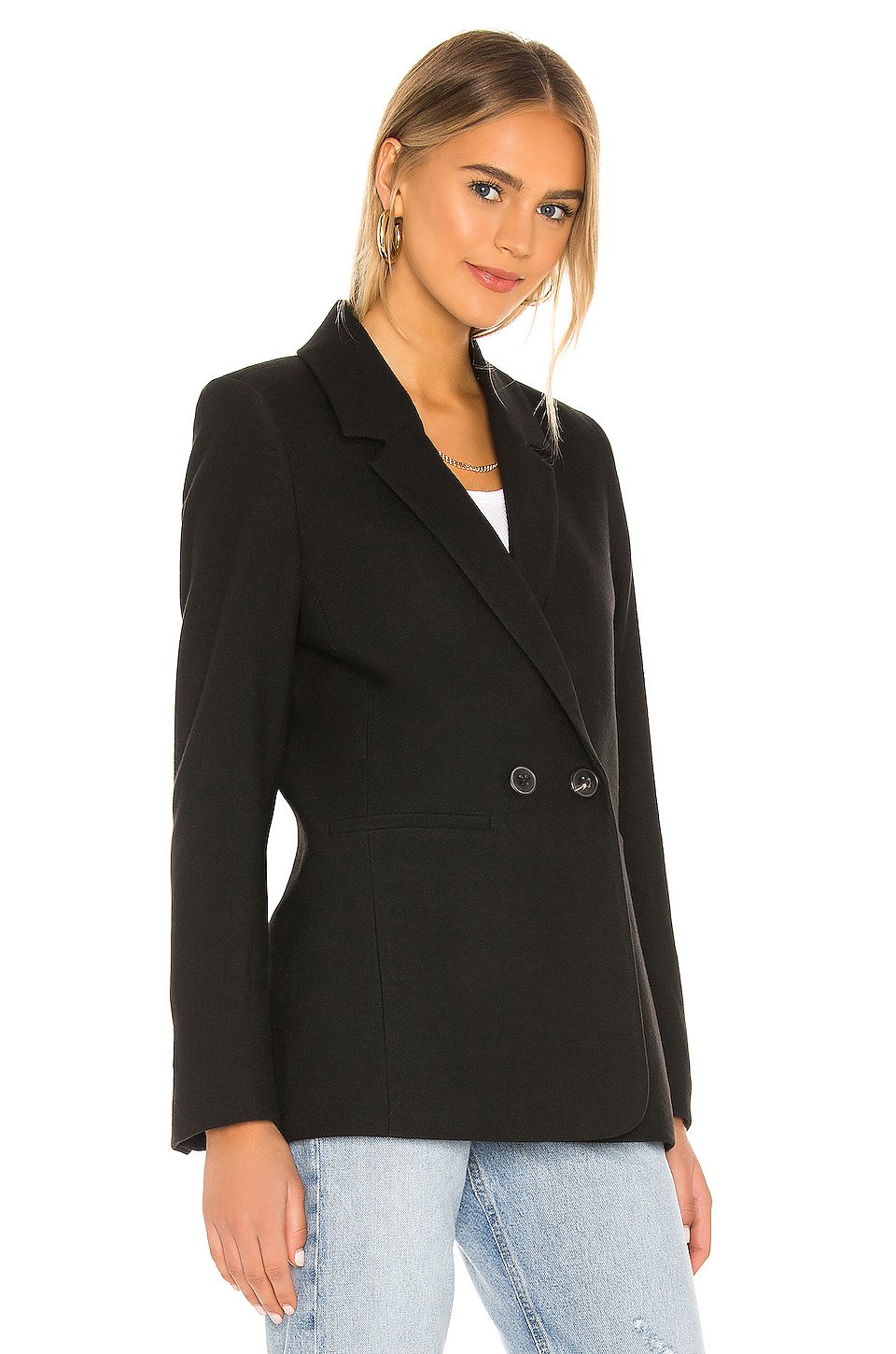 本体: 100% ポリエステル, 30% ウール, 13% ビスコース, 3% エラスタン裏地: 100% ポリエステルドライクリーニングのみフロントにボタン留め具サイドにウェルトポケットボタン付袖を施した、パッド付ショルダーバックベントトルコ製