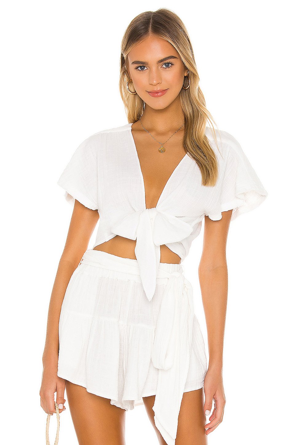 100% コットンドライクリーニングのみフロント結びクロージャーGauze fabric with frayed trim輸入品