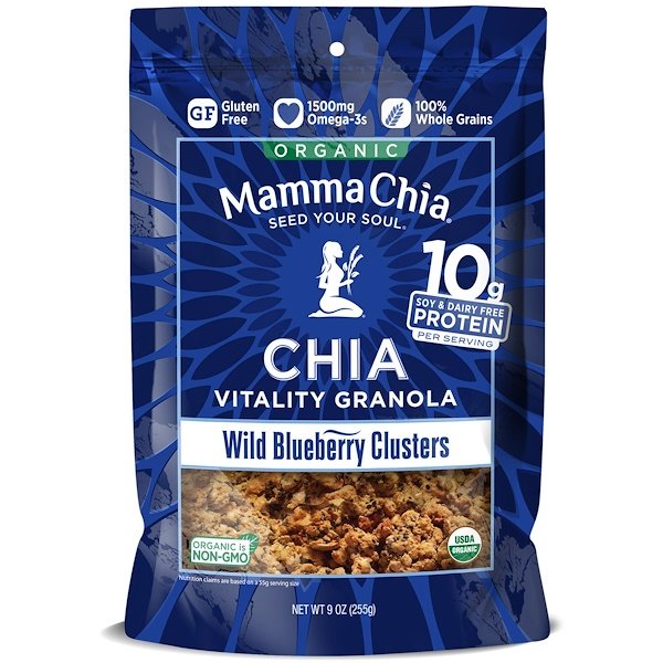 Mamma Chia, オーガニックチア・バイタリティグラノーラ、ワイルドブルーベリークラスター、9 oz (255 g)