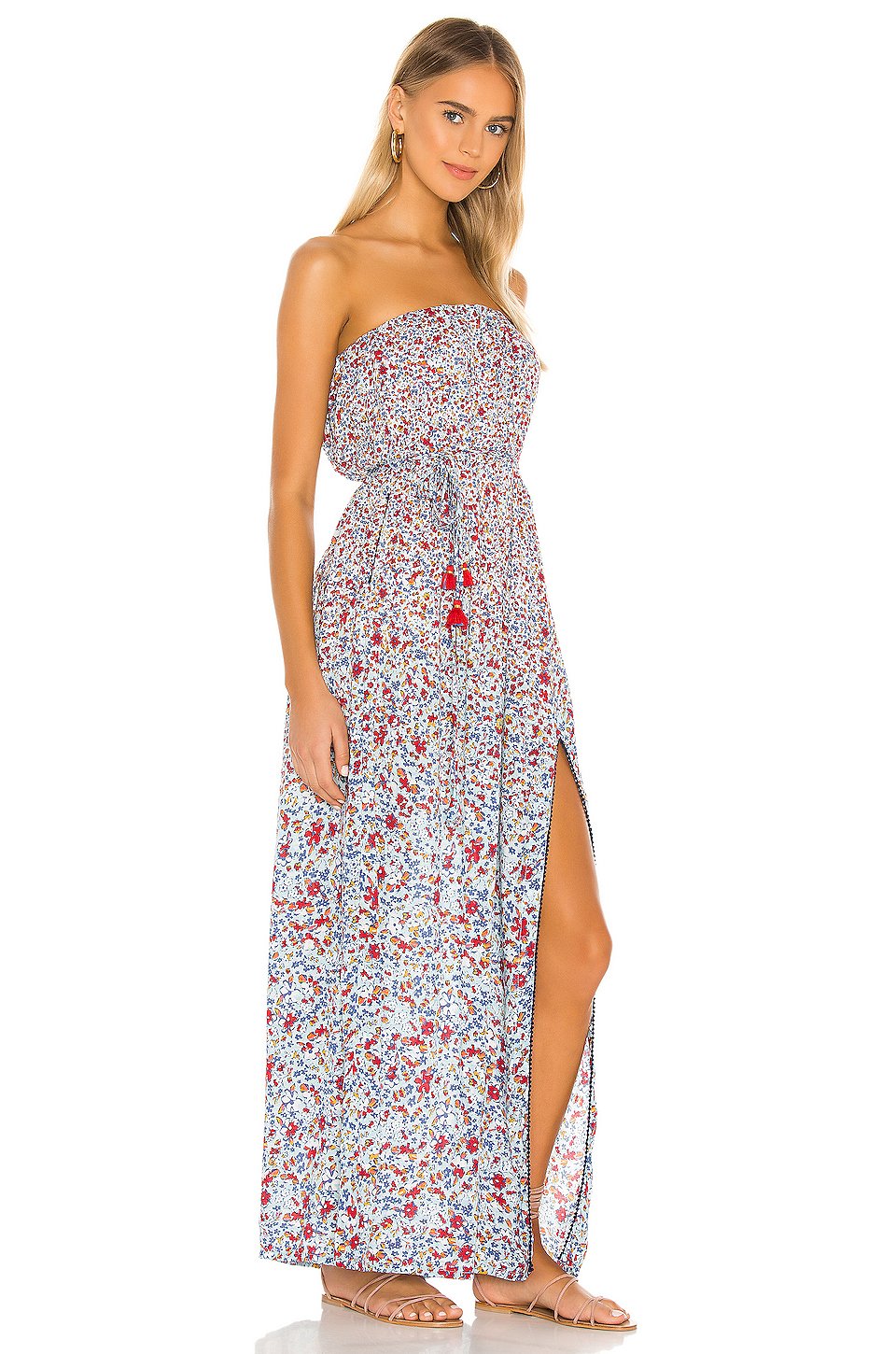 100% ビスコース低い液温で手洗い裏地無しプルオンスタイリングゴム入りネックラインとウエストDetachable waist tie with tassel details輸入品