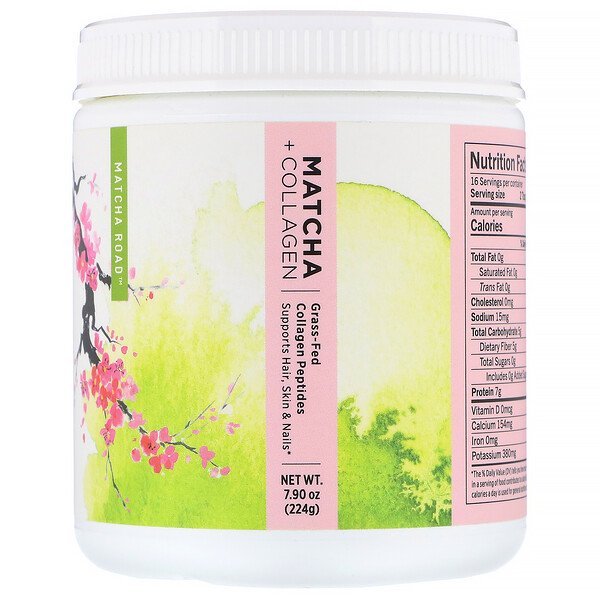 また、コラーゲンには天然由来のアミノ酸、抹茶には抗酸化物質やクロロフィルが含まれています – タンパク質7g、食物繊維5g。