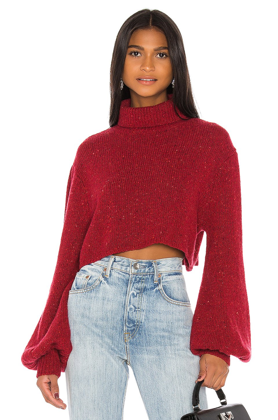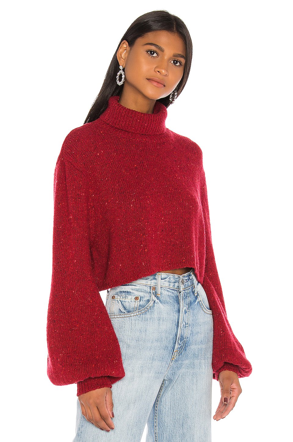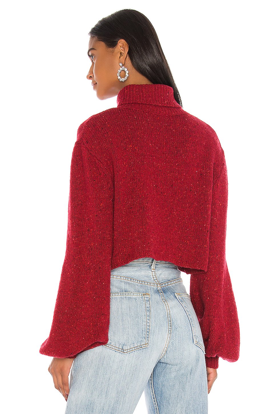 65% ウール, 30% ナイロン, 5%アルパカ低い液温で手洗い折り返しのネックラインバルーンスリーブニット生地輸入品