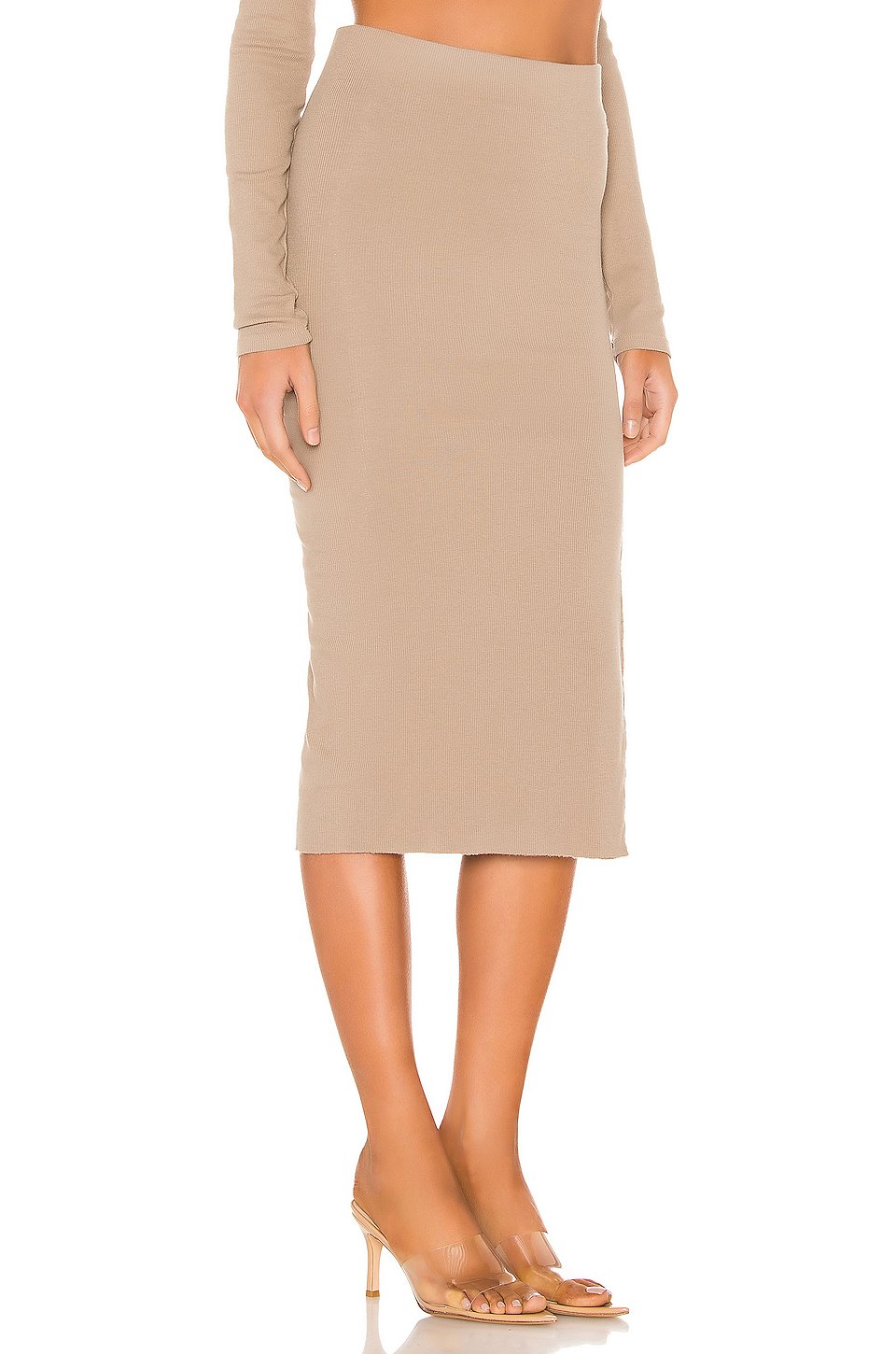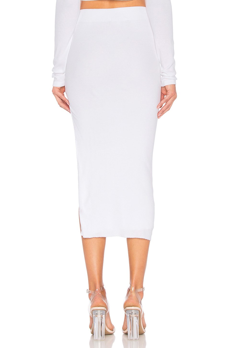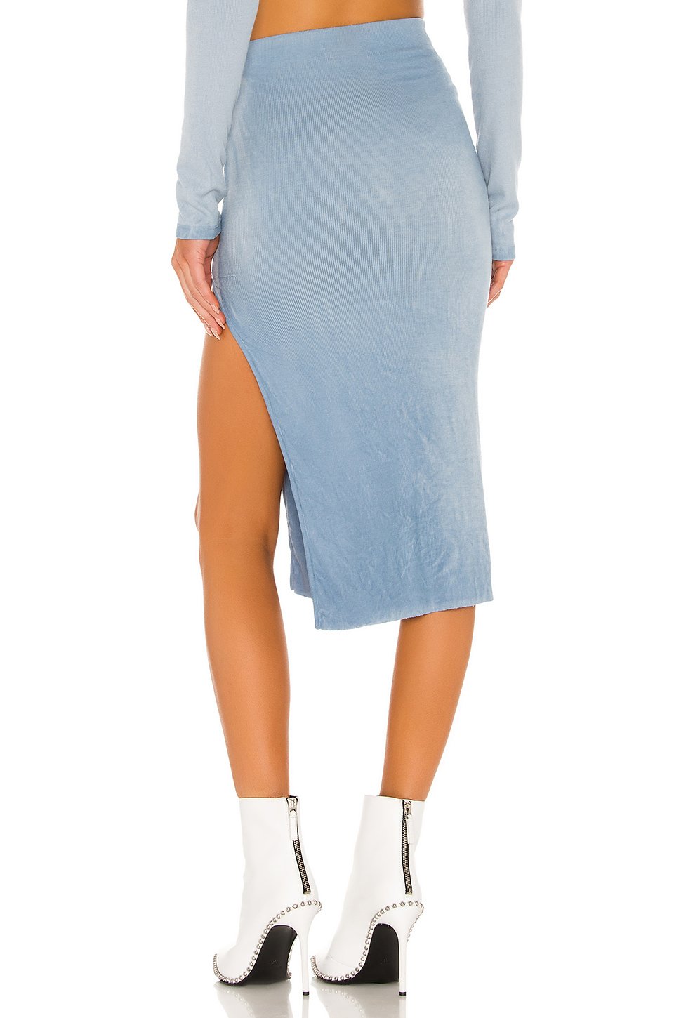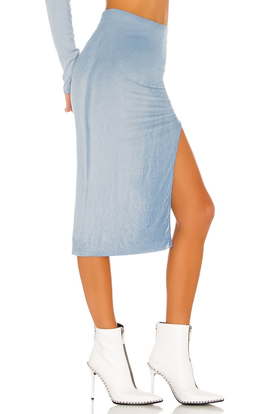 46% コットン, 46% モダル, 8% スパンデックス軽量リブニット生地ゴム入りウエストバンドサイドスリットディテール切りっぱなしのヘムLight fading throughoutスカートの長さは約76 cmアメリカ製