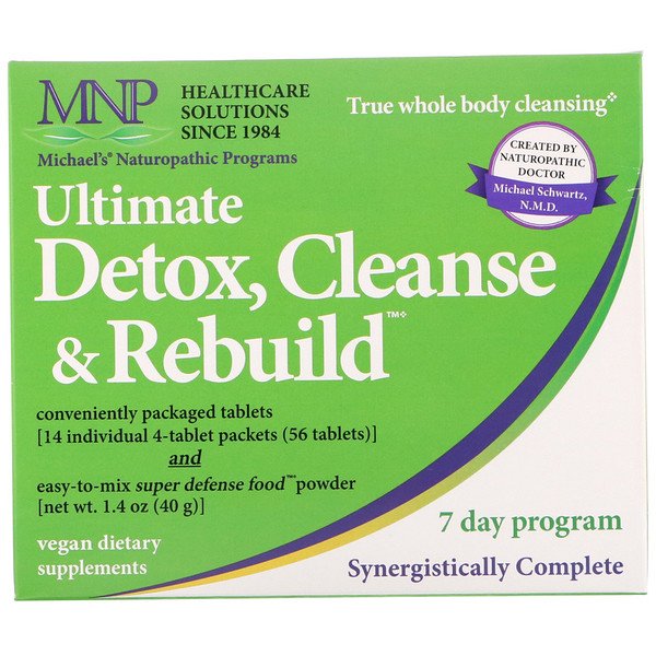 Healthcare Solutions Since 1984 True Whole Body Cleansing Created by Naturopath Doctor – Michael Schwartz, N.M.D. Vegan Dietary Supplements 7 Day Program Synergistically Complete Ultimate Detox & Cleanse is Certified Kosher 2 Products in One! Ultimate detox & cleanse The delicious powdered super food formula Conveniently packaged tablets [14 individual 4-tablet packets (56 tablets)] and easy-to-mix super defense food powder [net wt. 1.4 oz (40 g)]. Ultimate Detox & Cleanse Aids digestion May help decrease appetite Helps cleanse the intestinal tract