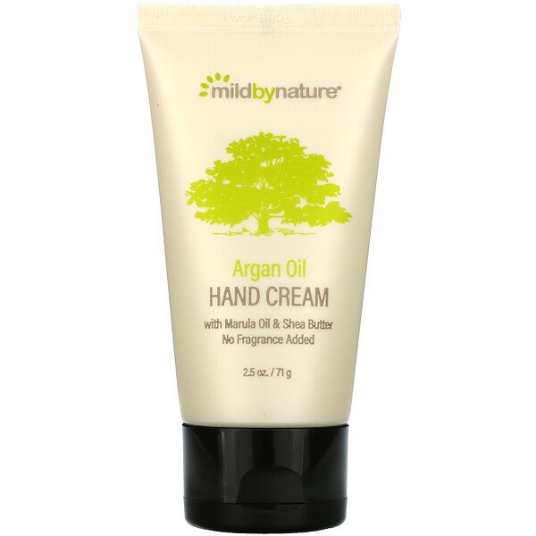 Mild By Nature, マルラオイル&シアバター配合アルガンオイルハンドクリーム、無香料、71g(2.5オンス)